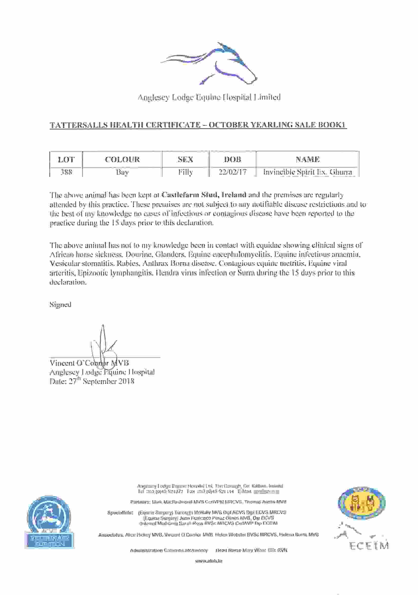 Consignor: Castlefarm Stud, Ireland (Agent)