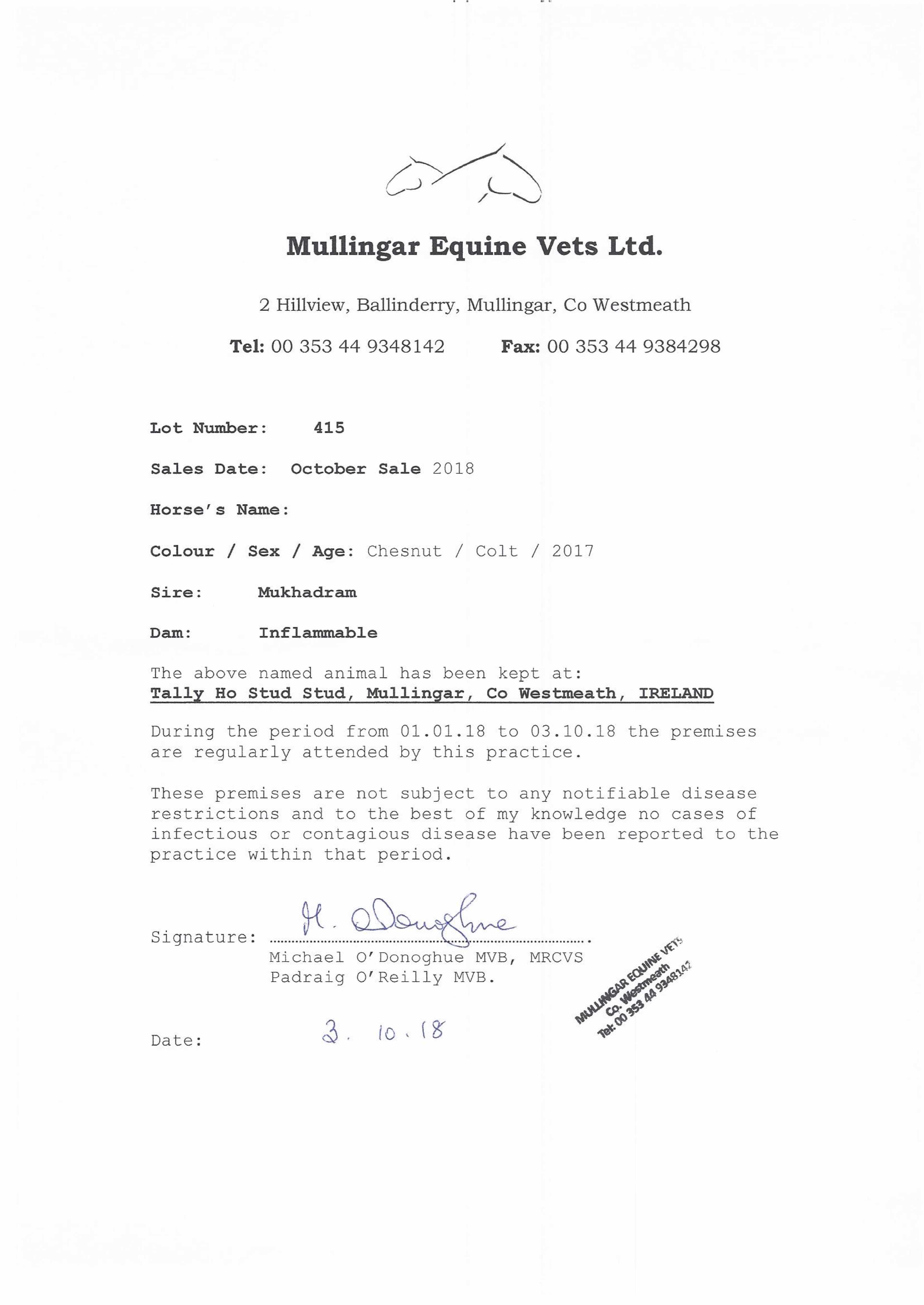 February Sale 2018 lot 444 Fire Palace (GB) (F. by Royal Applause (GB)), Robert Eddery Racing=>Reda Tuhami 8,500 gns
