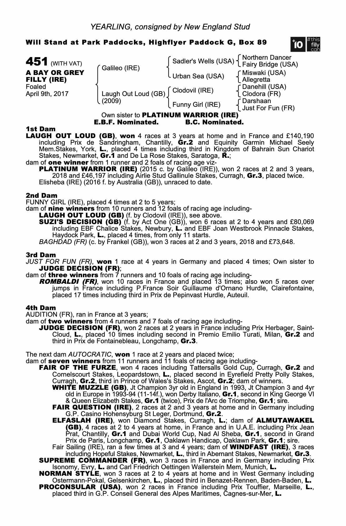 October Yearling Sale, Book 2 2017 lot 566 F. by Australia (GB) 2016, New England Stud=>Blandford Bloodstock 200,000 gns
