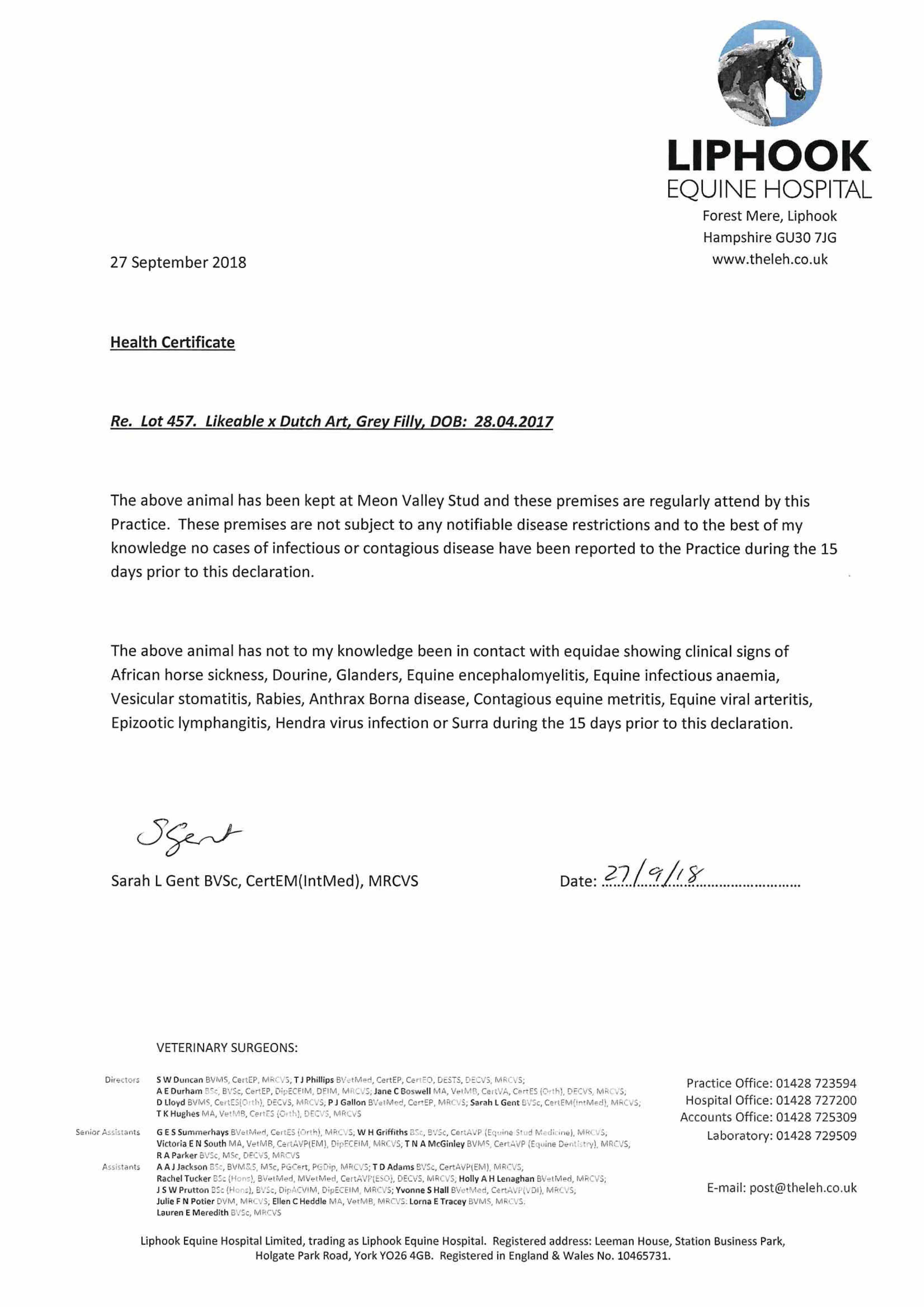 Consignor: Meon Valley Stud