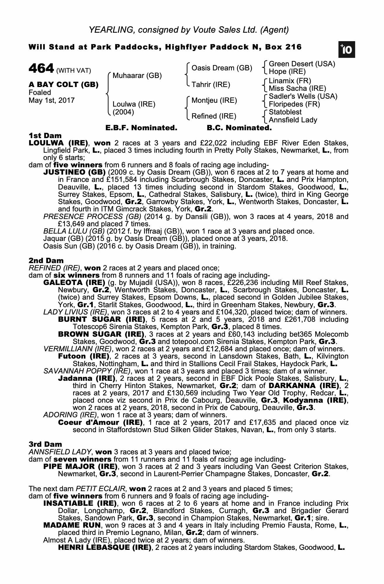 Consignor: Voute Sales Ltd. (Agent)