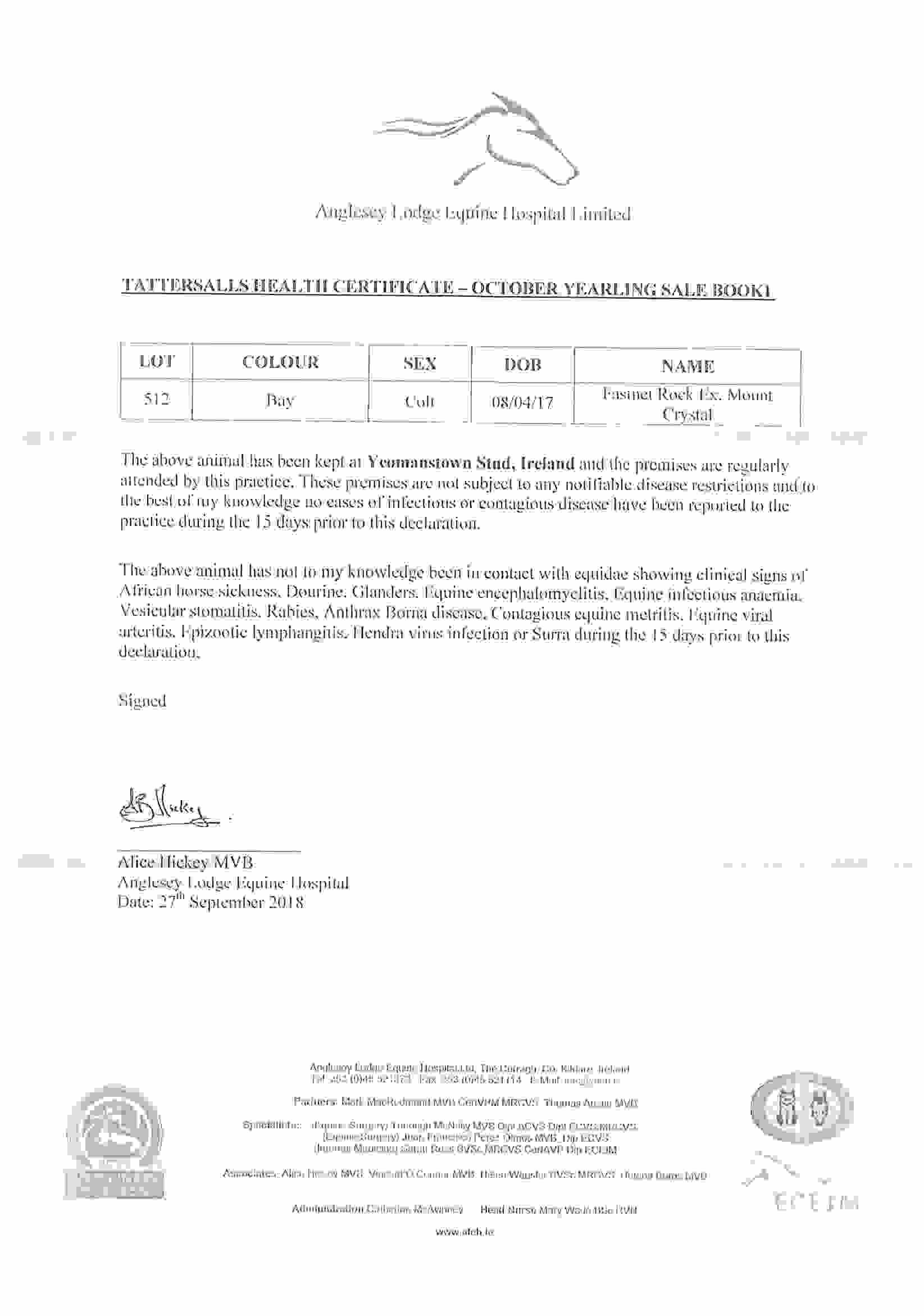 Consignor: Yeomanstown Stud, Ireland