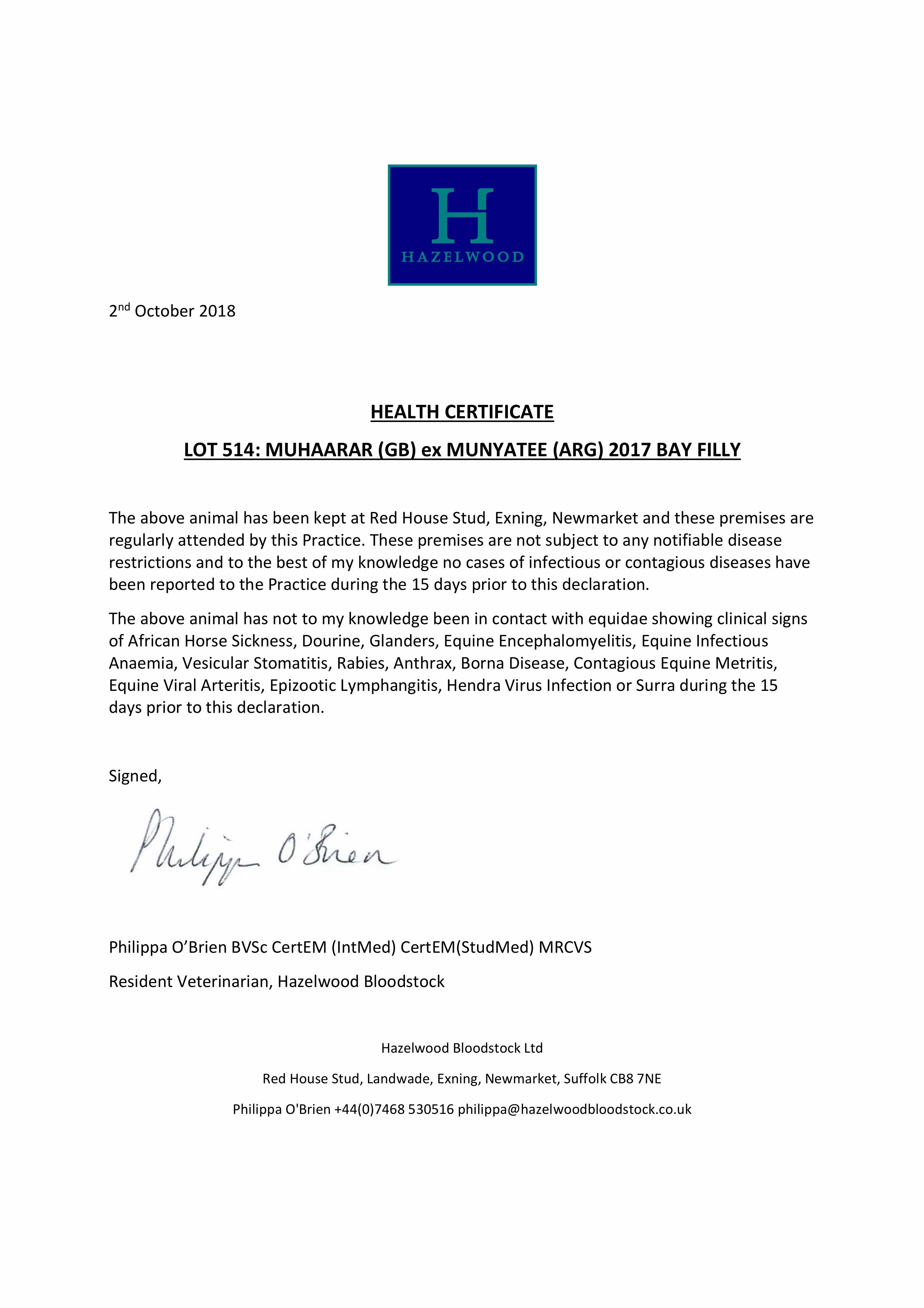 Consignor: Hazelwood Bloodstock