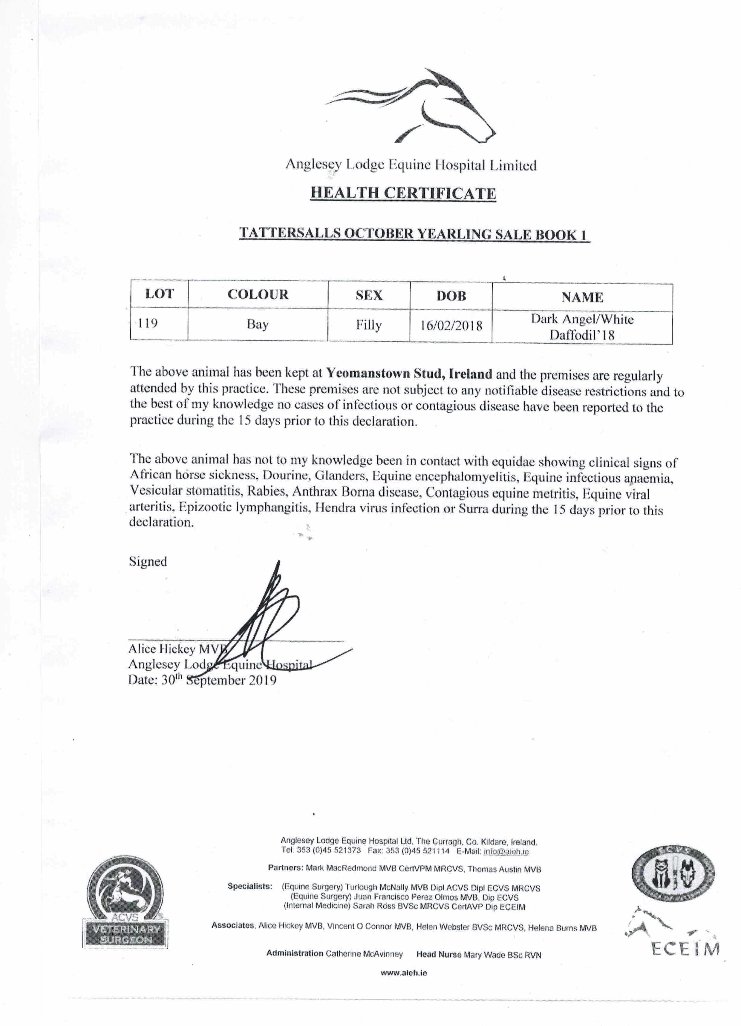 October Yearling Sale, Book 1 2020 lot 531 F. 2019, Yeomanstown Stud, Ireland=>Vendor 230,000 gns