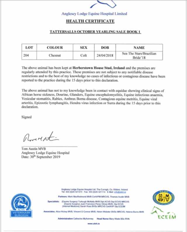 Consignor: Herbertstown House Stud (Co. Kildare), Ireland