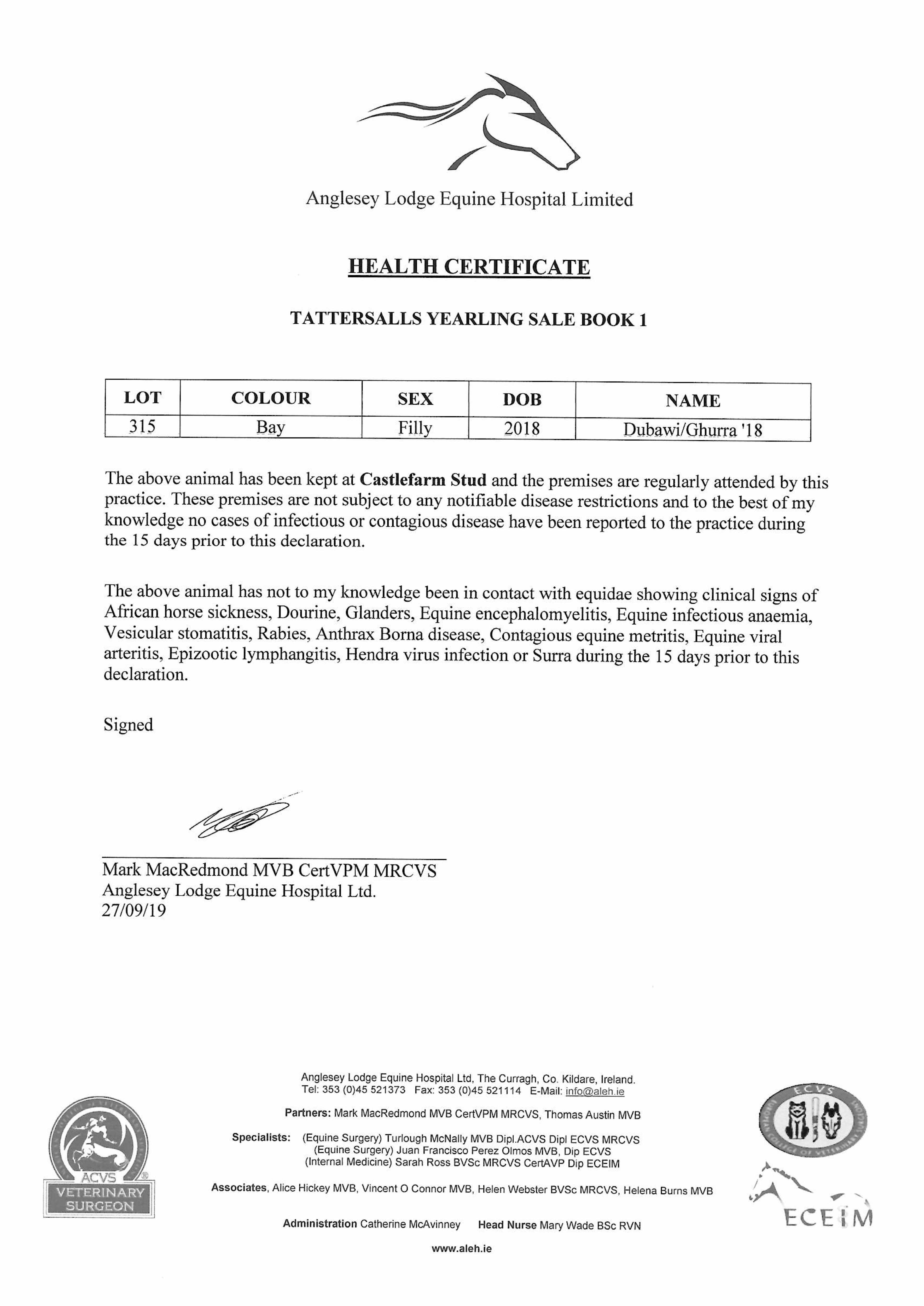 Consignor: Castlefarm Stud, Ireland (Agent)
