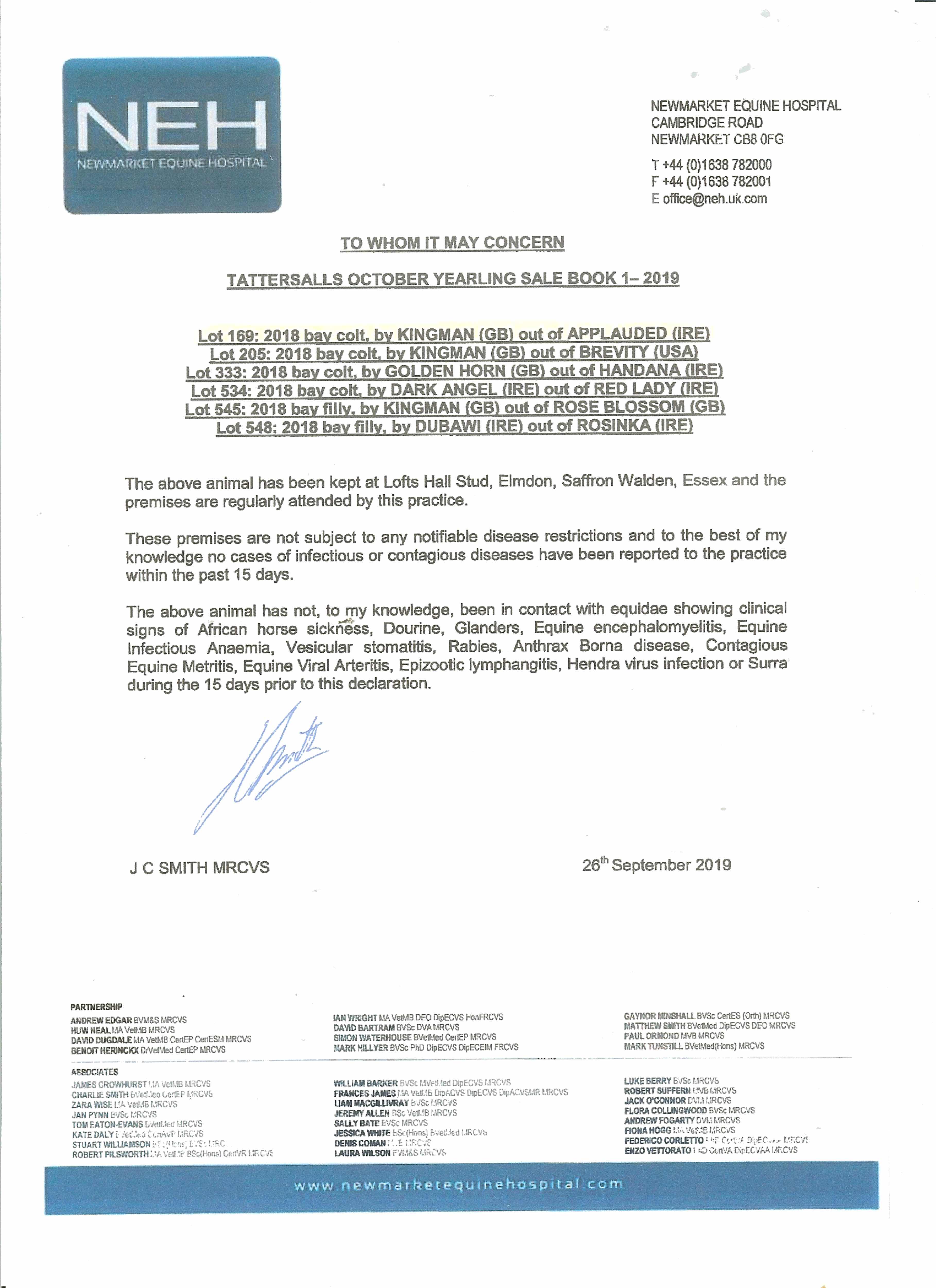 October Yearling Sale, Book 2 2020 lot 835 C. 2019, Lofts Hall Stud=>Howson & Houldsworth Bloodstock 20,000 gns