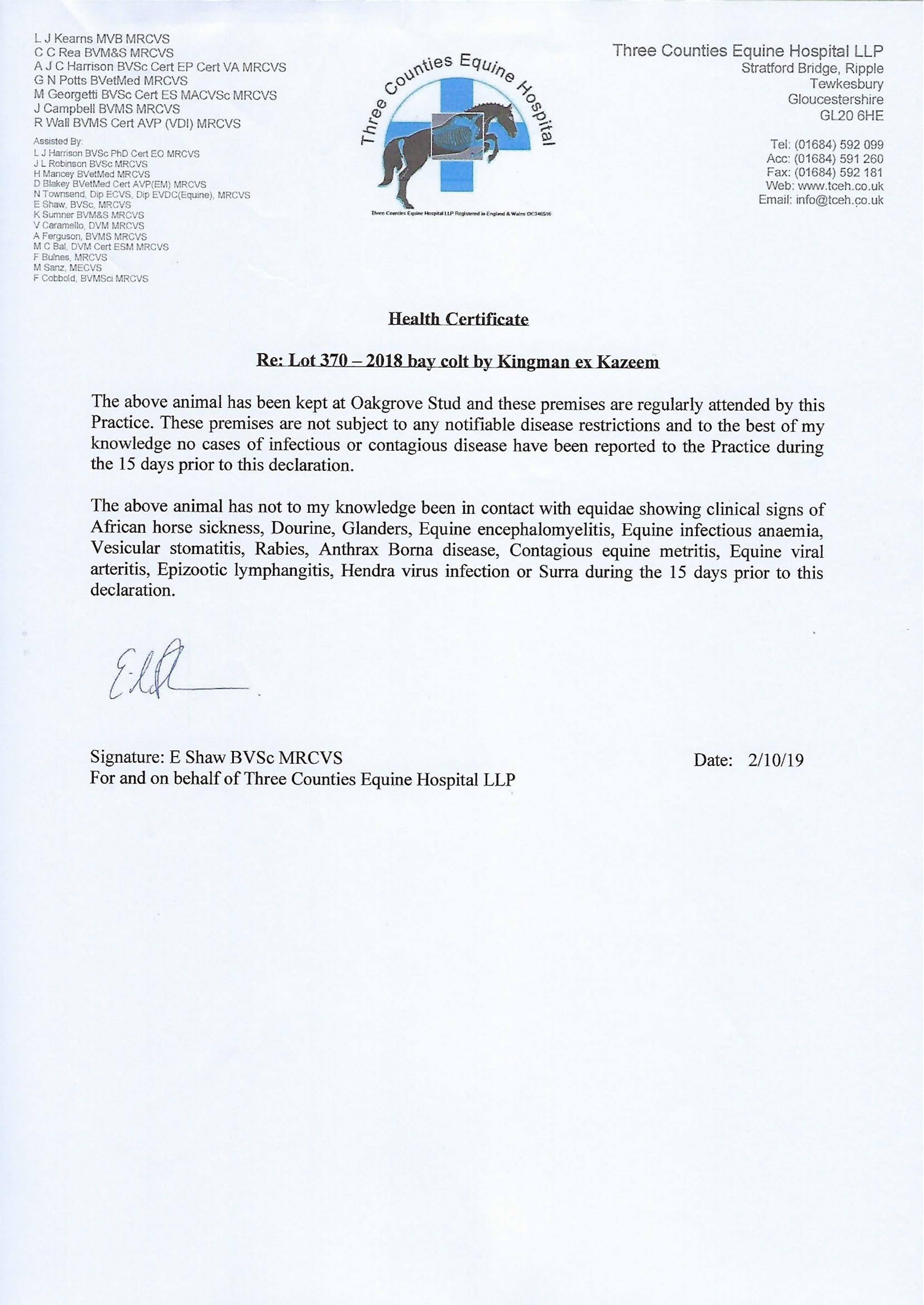 Online Charity Auction of Stallion Nominations lot 3 A Nomination to Al Kazeem (GB) (H. by Dubawi (IRE)), =>Bidding Closed £7,000
