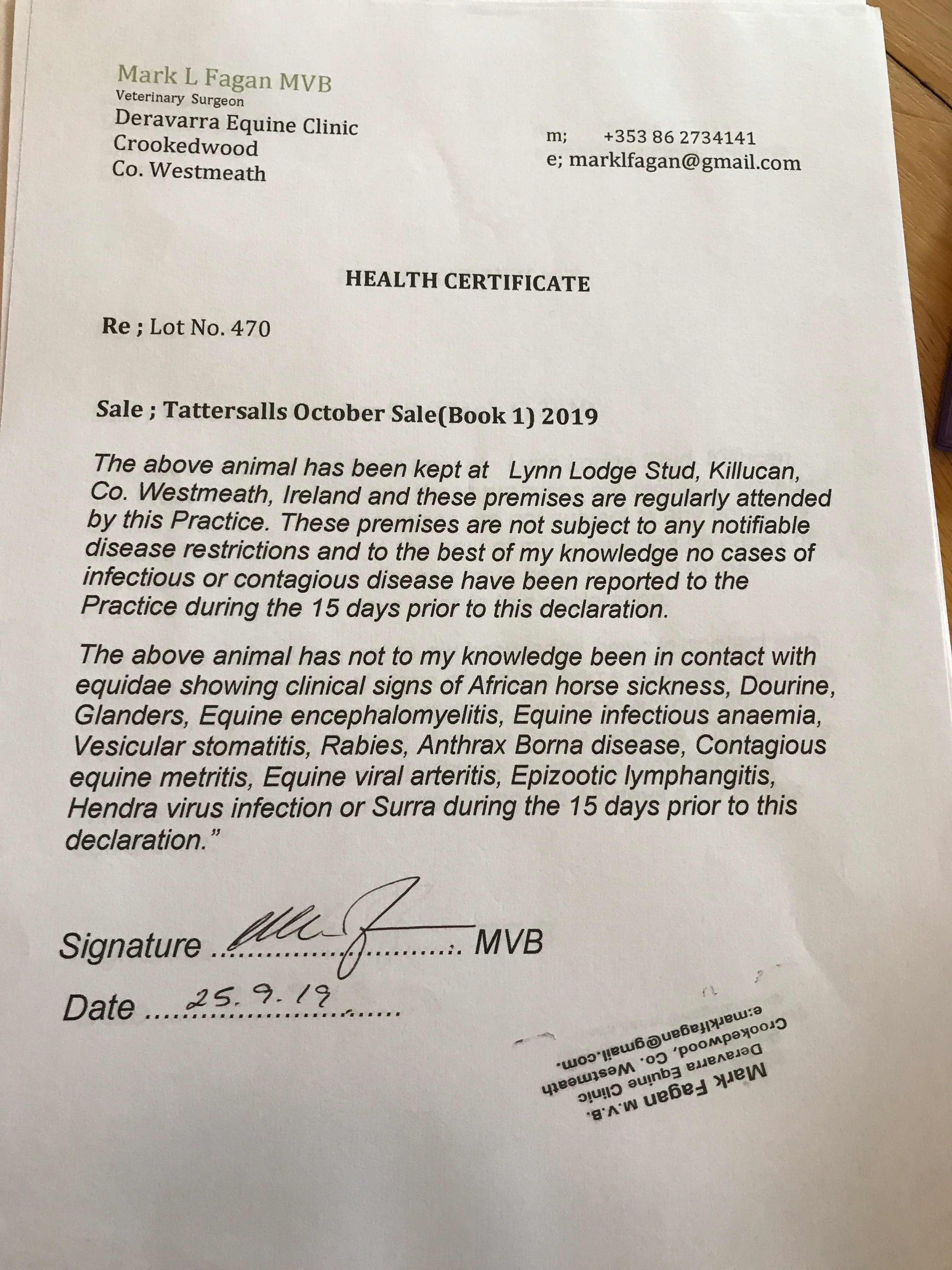 Consignor: Lynn Lodge Stud, Ireland