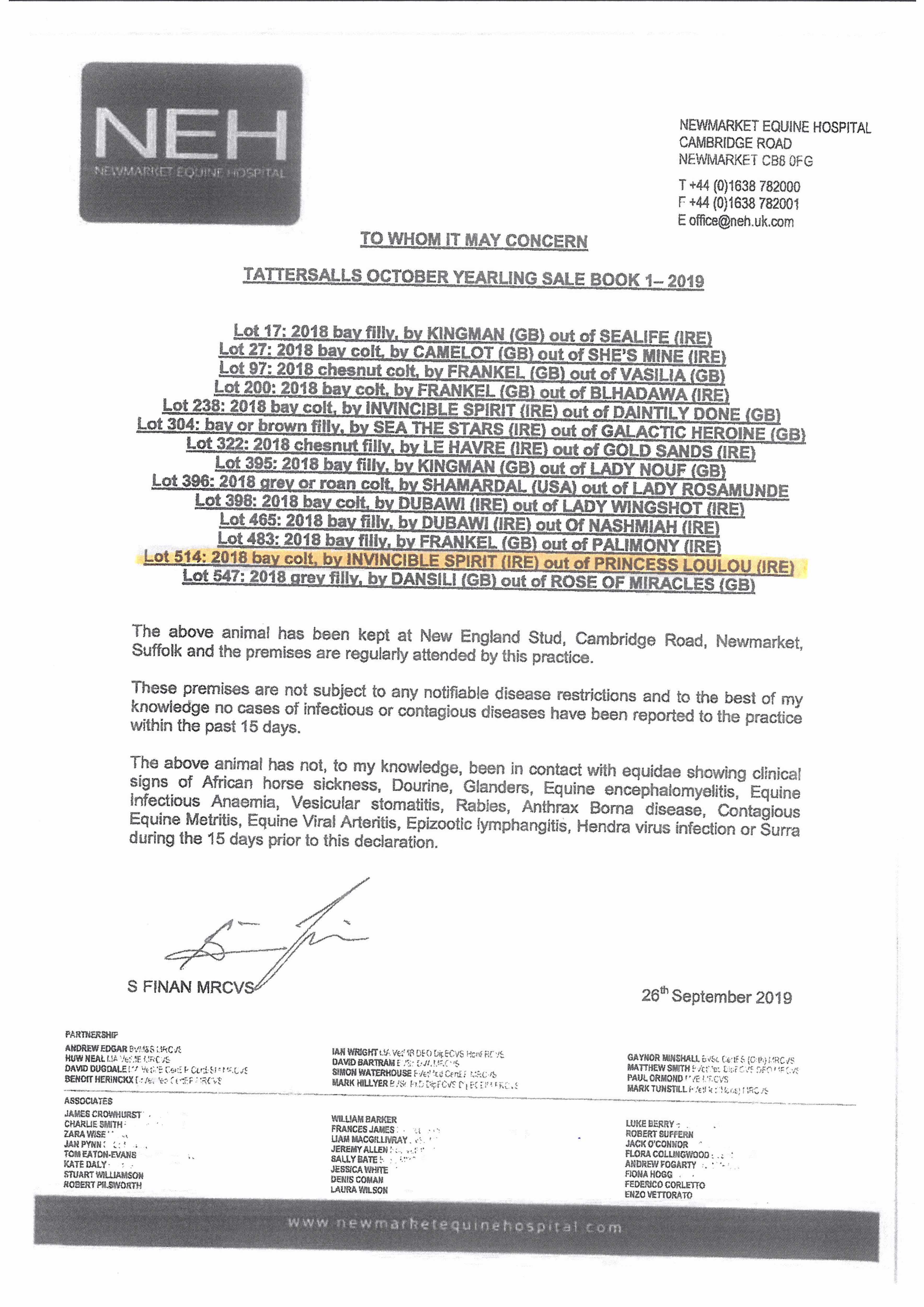 December Foal Sale 2018 lot 1038, New England Stud=>Lot Not Sold 95,000 gns