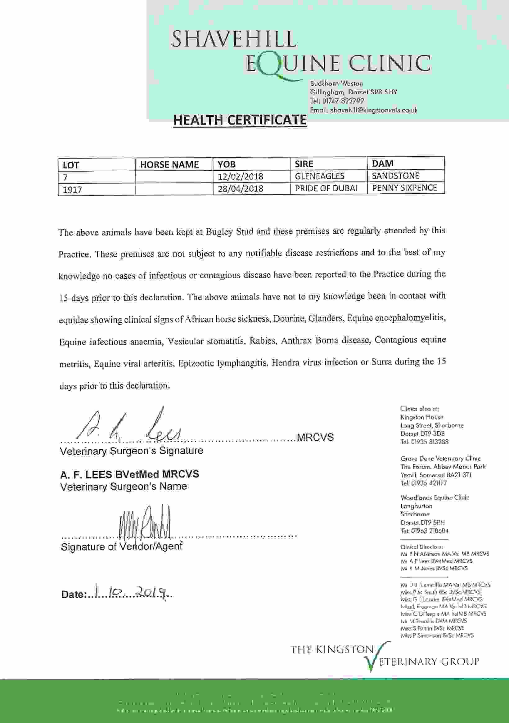 December Foal Sale 2018 lot 840, Bugley Stud=>Lot Not Sold 78,000 gns