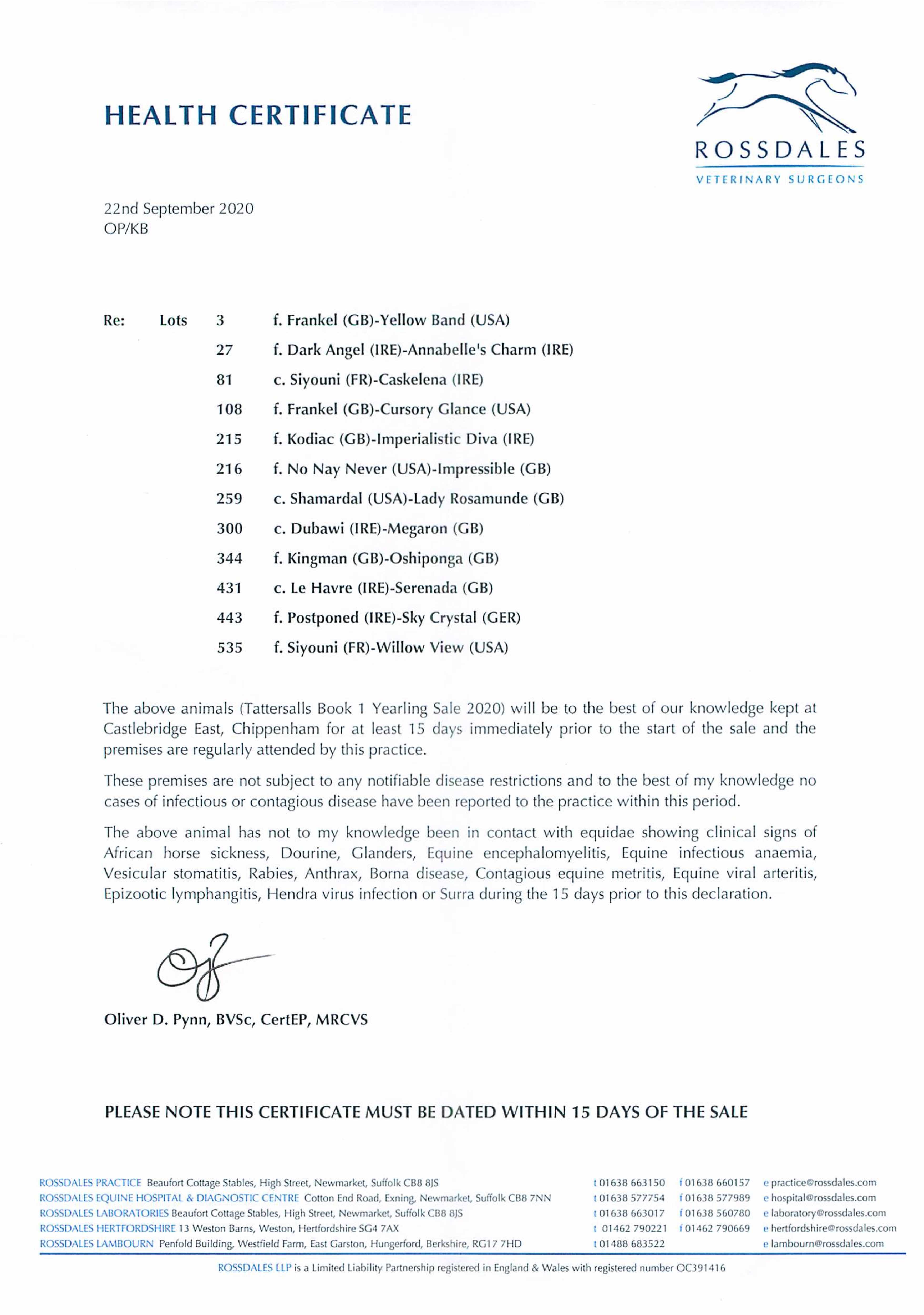 Sapphire Sale 2024 lot 1003 Dark Reckoning (GB) (M. by Equiano (FR)), Rathasker Stud=>Lot Not Sold €2,000