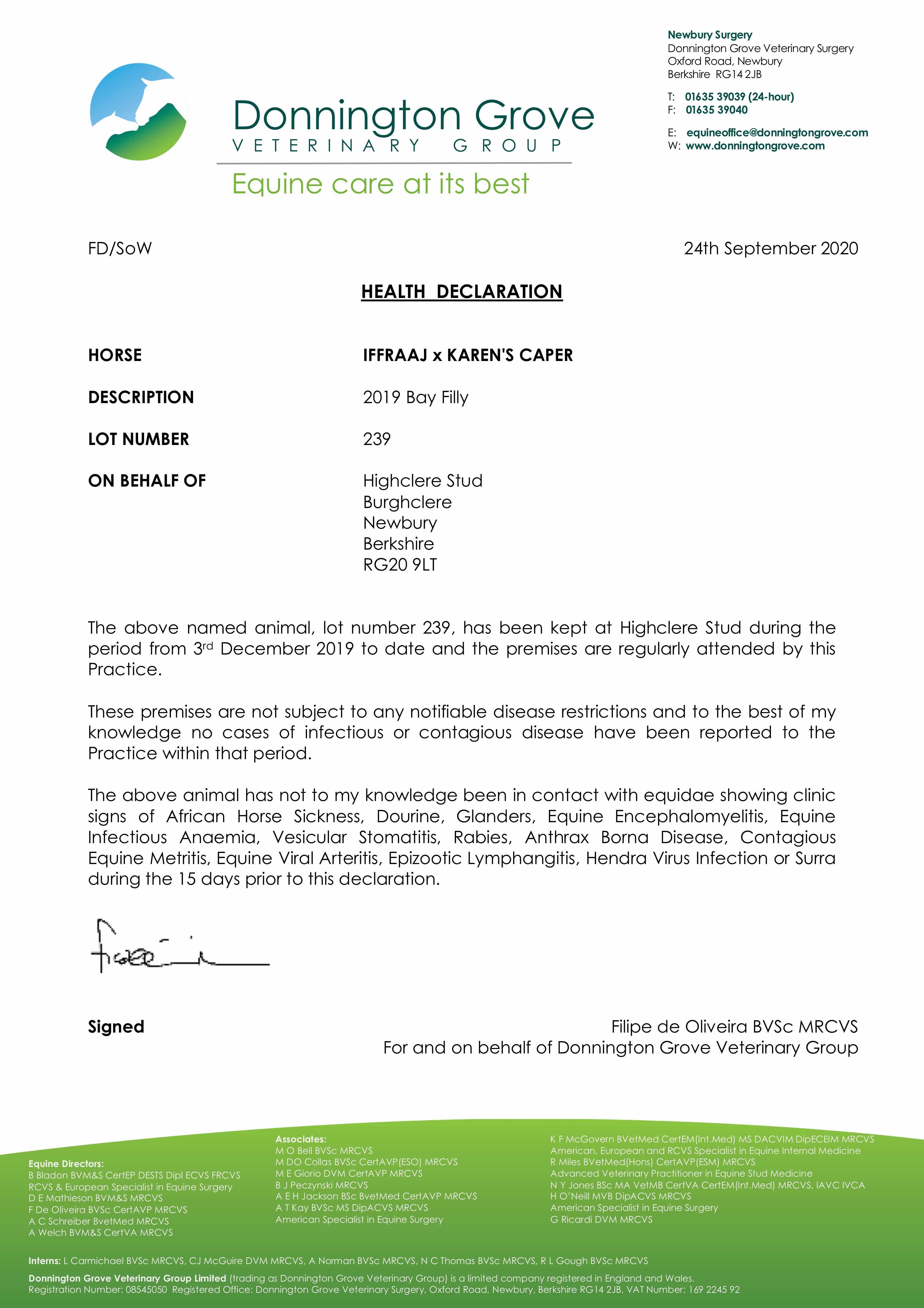 Consignor: Highclere Stud