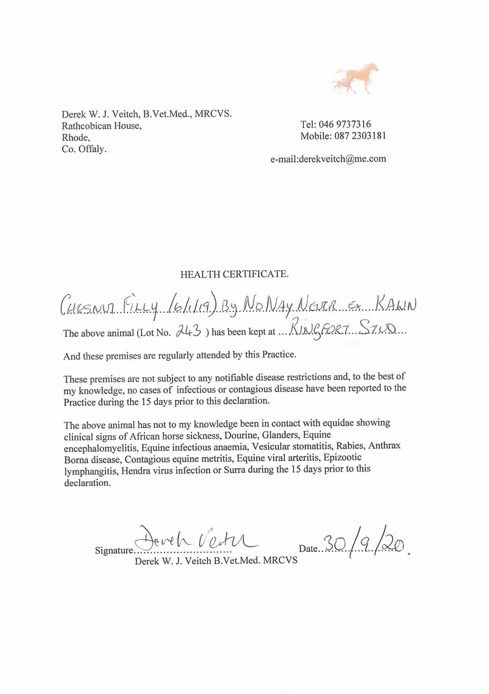 December Foal Sale 2019 lot 1002, Norelands Stud, Ireland=>Kilbride Equine 60,000 gns