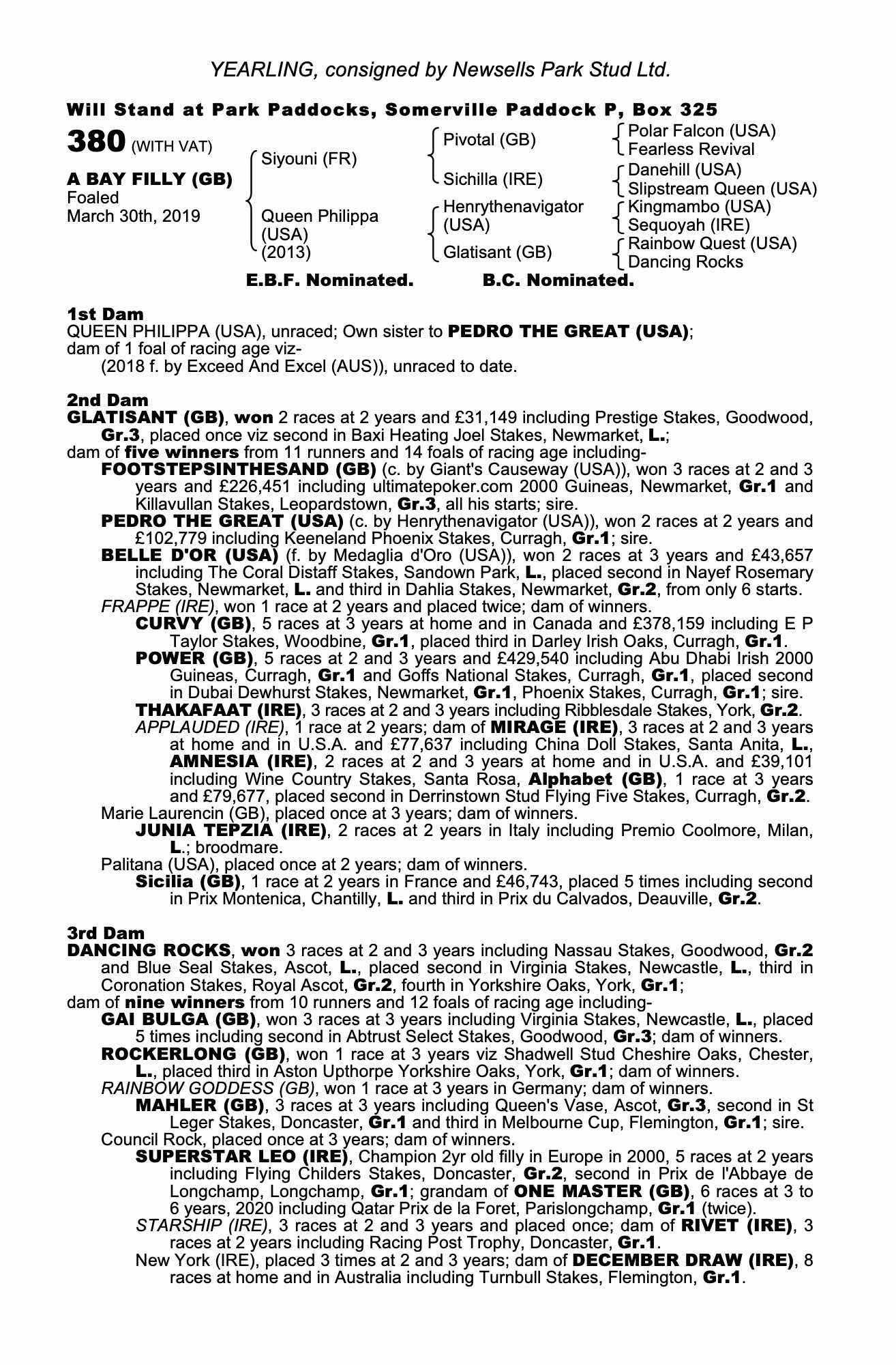 October Yearling Sale, Book 2 2019 lot 1298 F. by Exceed And Excel (AUS) 2018, Newsells Park Stud Ltd.=>NYX Racing 85,000 gns