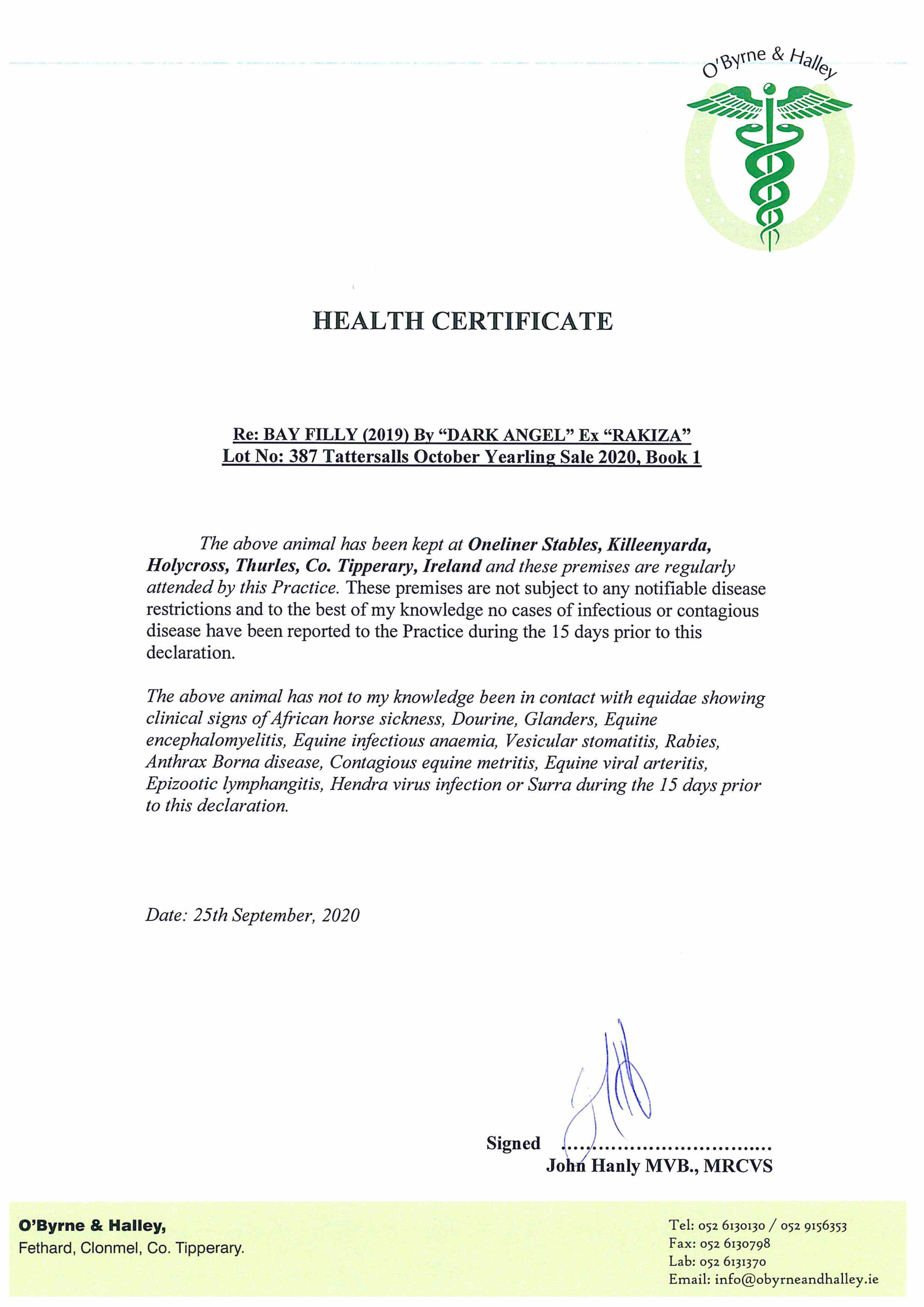 Consignor: Oneliner Stables, Ireland