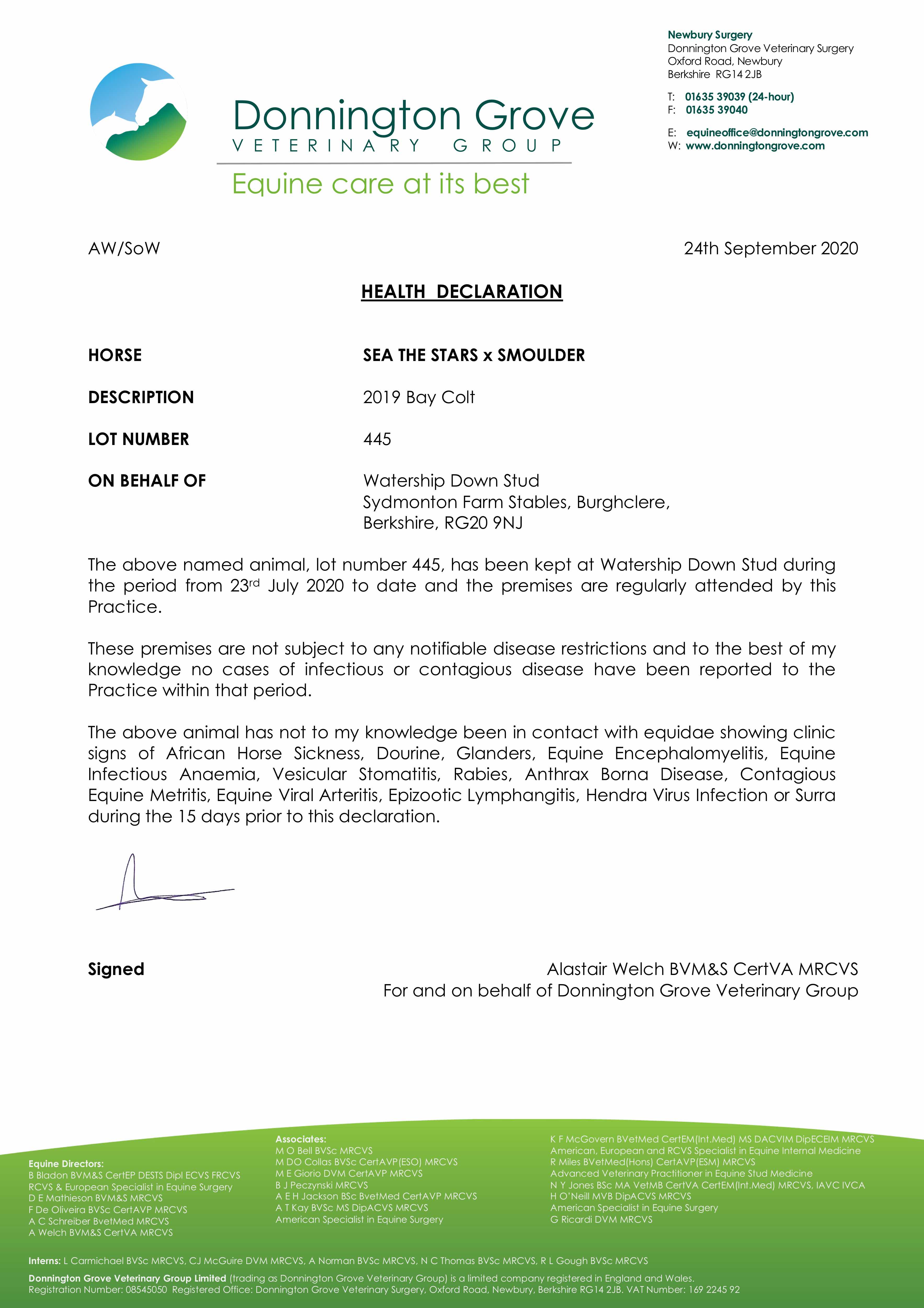 Consignor: Watership Down Stud