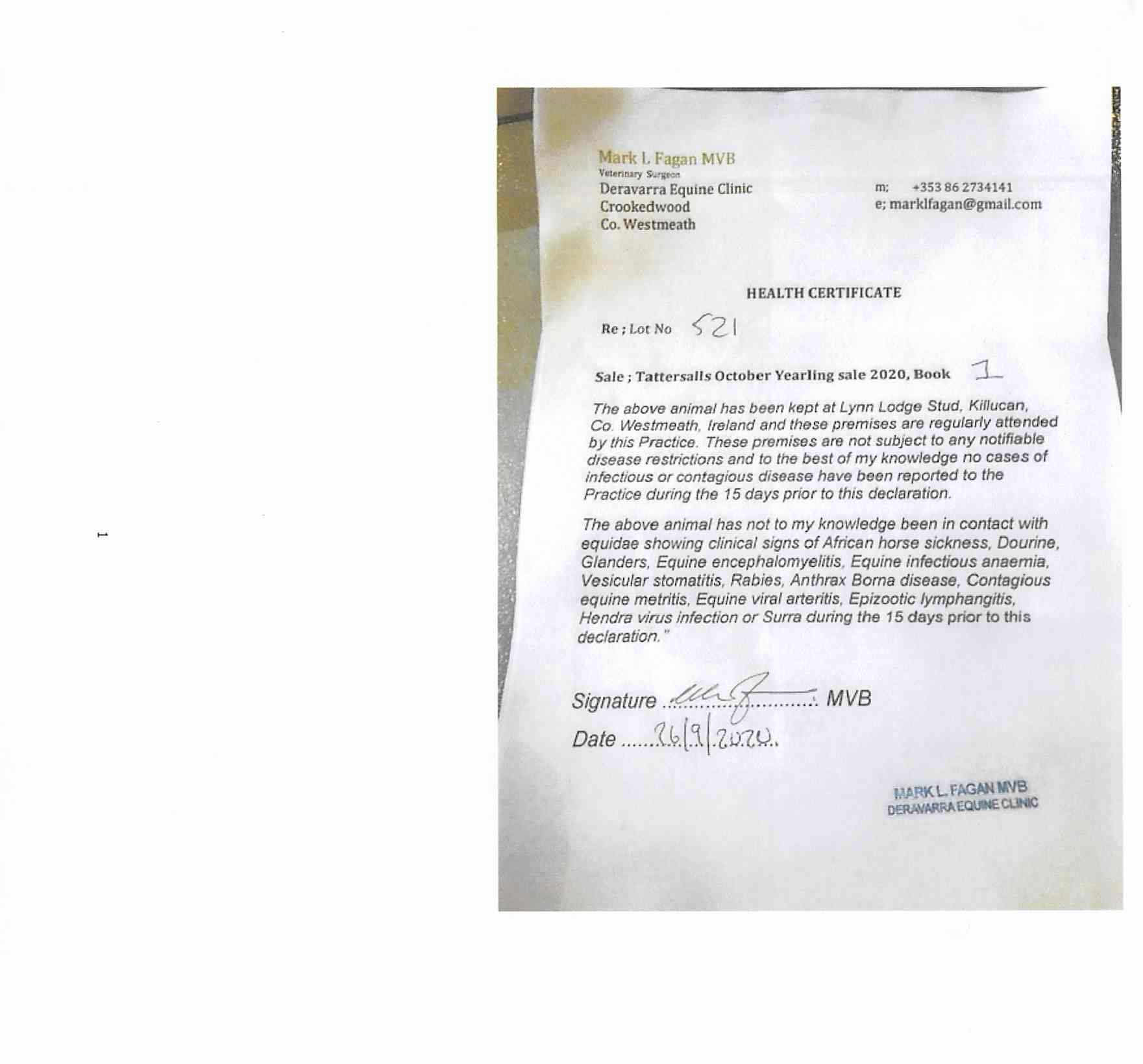 Consignor: Lynn Lodge Stud, Ireland