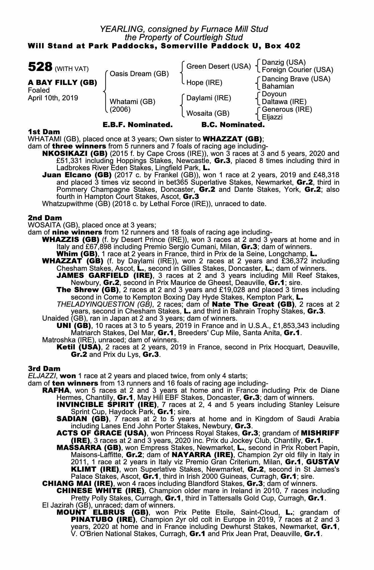 December Mare Sale 2019 lot 1880 Nkosikazi (GB) (F. by Cape Cross (IRE)), Somerville Lodge Ltd. (W. Haggas), Agent=>Kern/Lillingston Association 220,000 gns