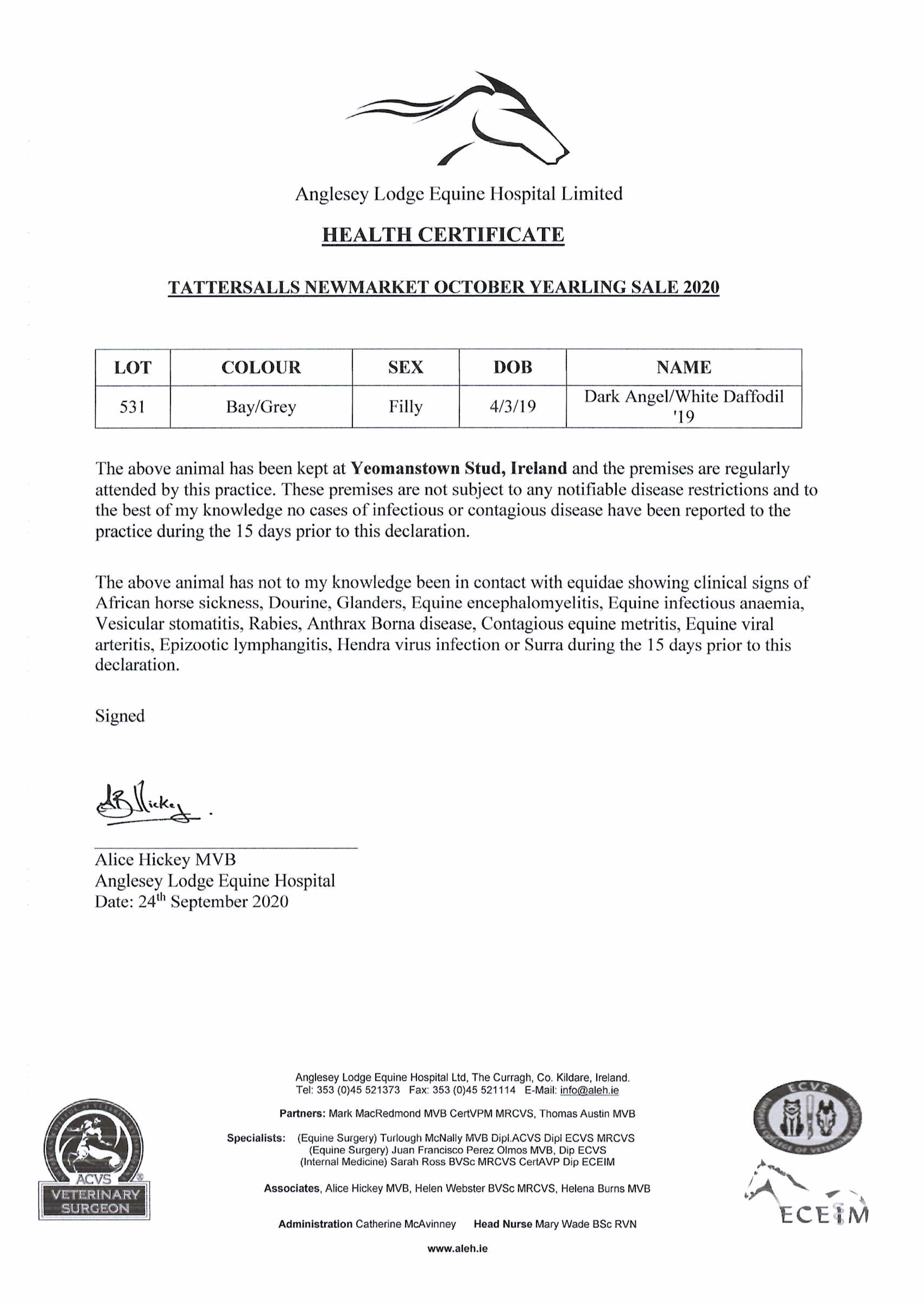 October Yearling Sale, Book 1 2019 lot 119 F. 2018, Yeomanstown Stud, Ireland=>Shadwell Estate Company 390,000 gns