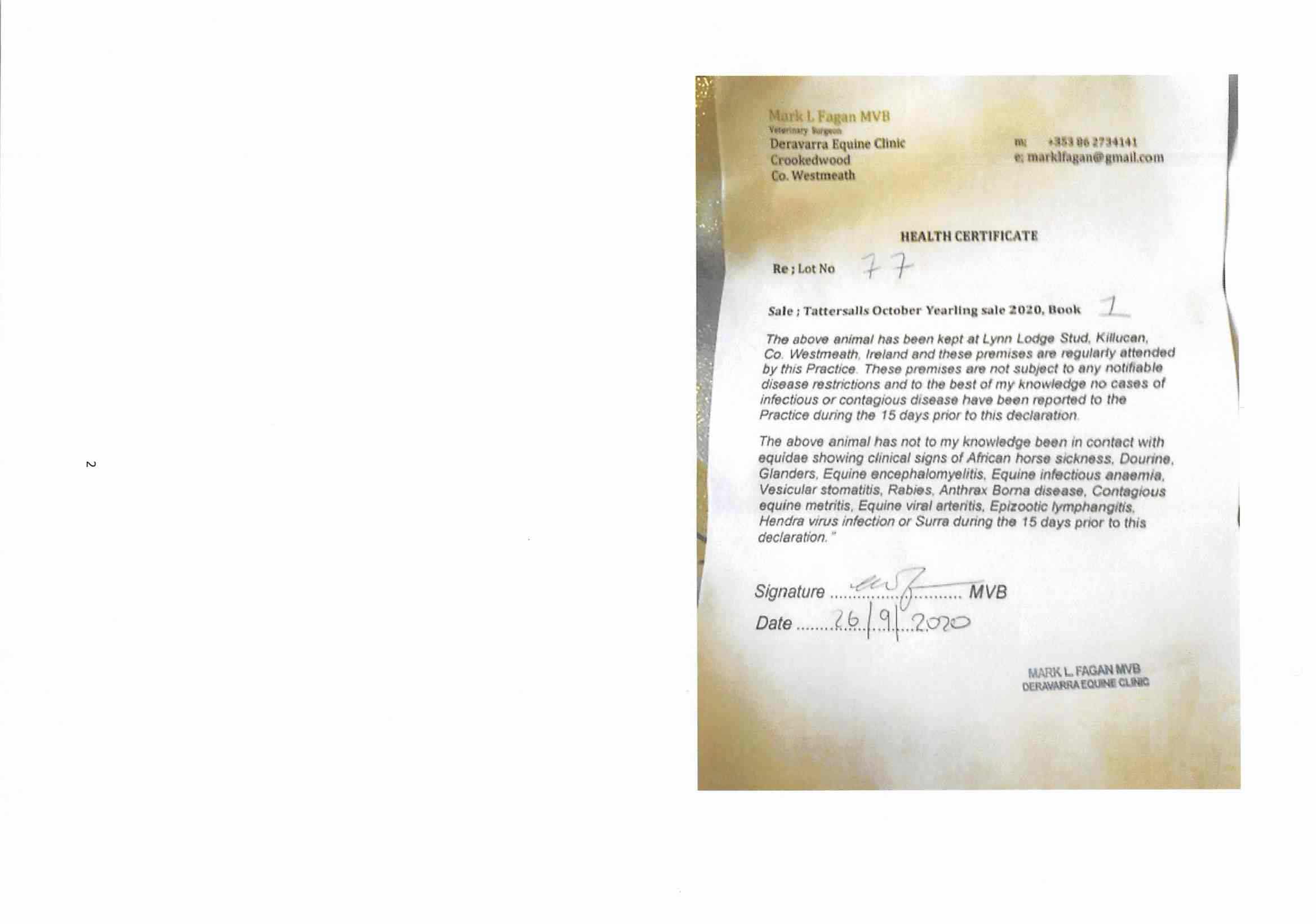 Consignor: Lynn Lodge Stud, Ireland