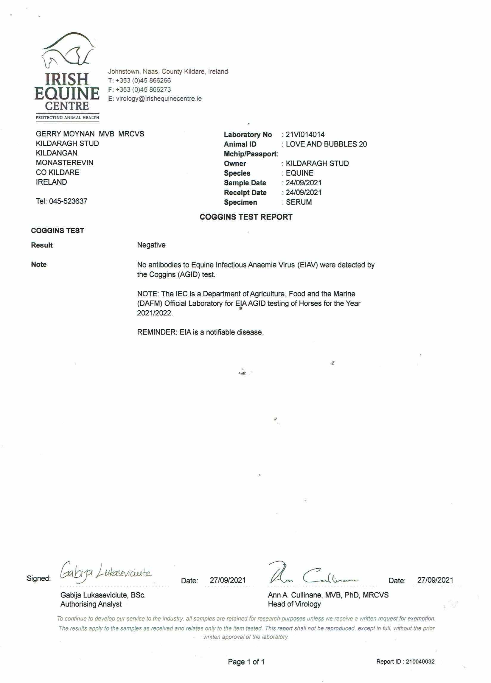 Consignor: Kildaragh Stud, Ireland (Agent)