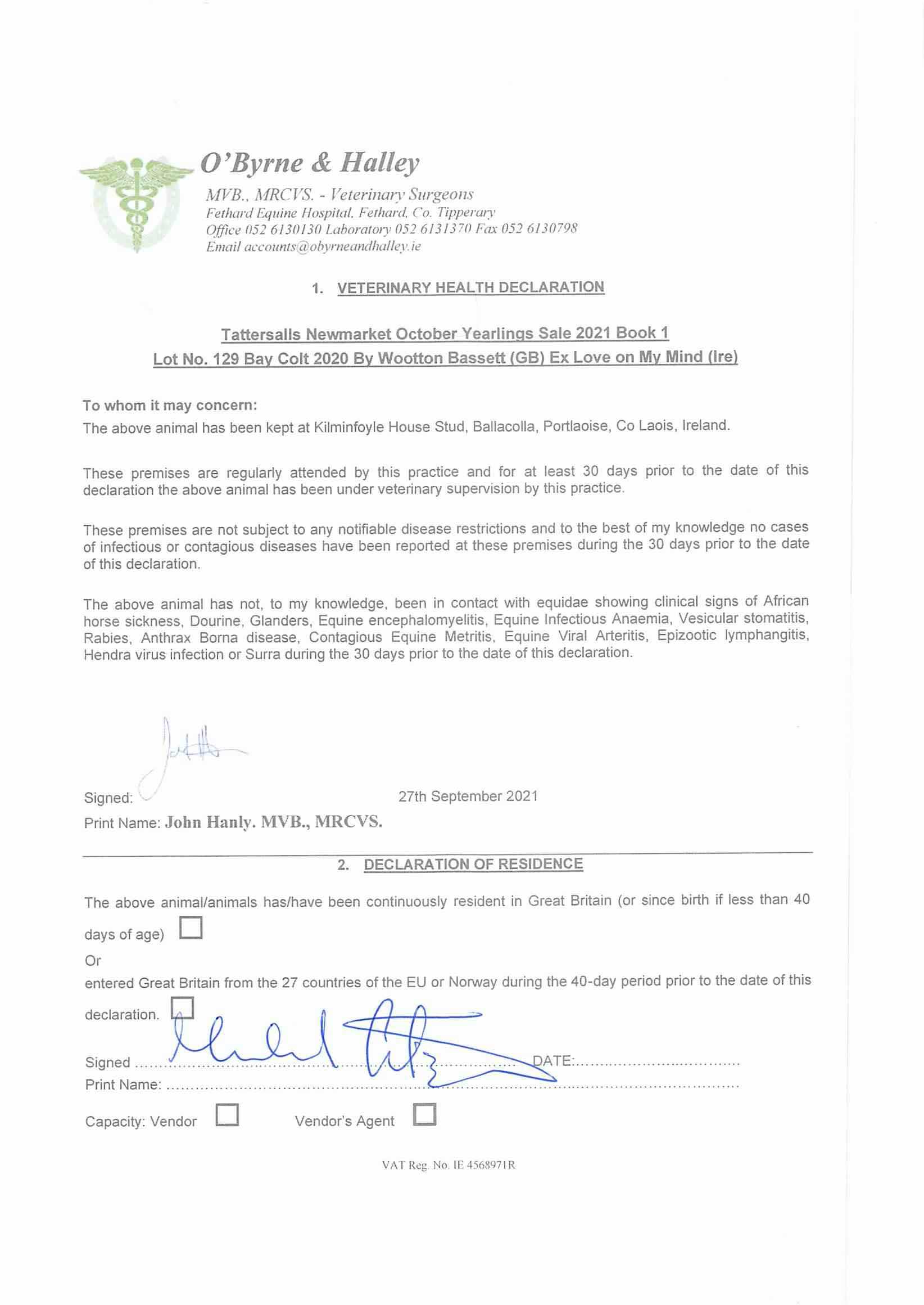 Consignor: Kilminfoyle House Stud, Ireland (Agent)