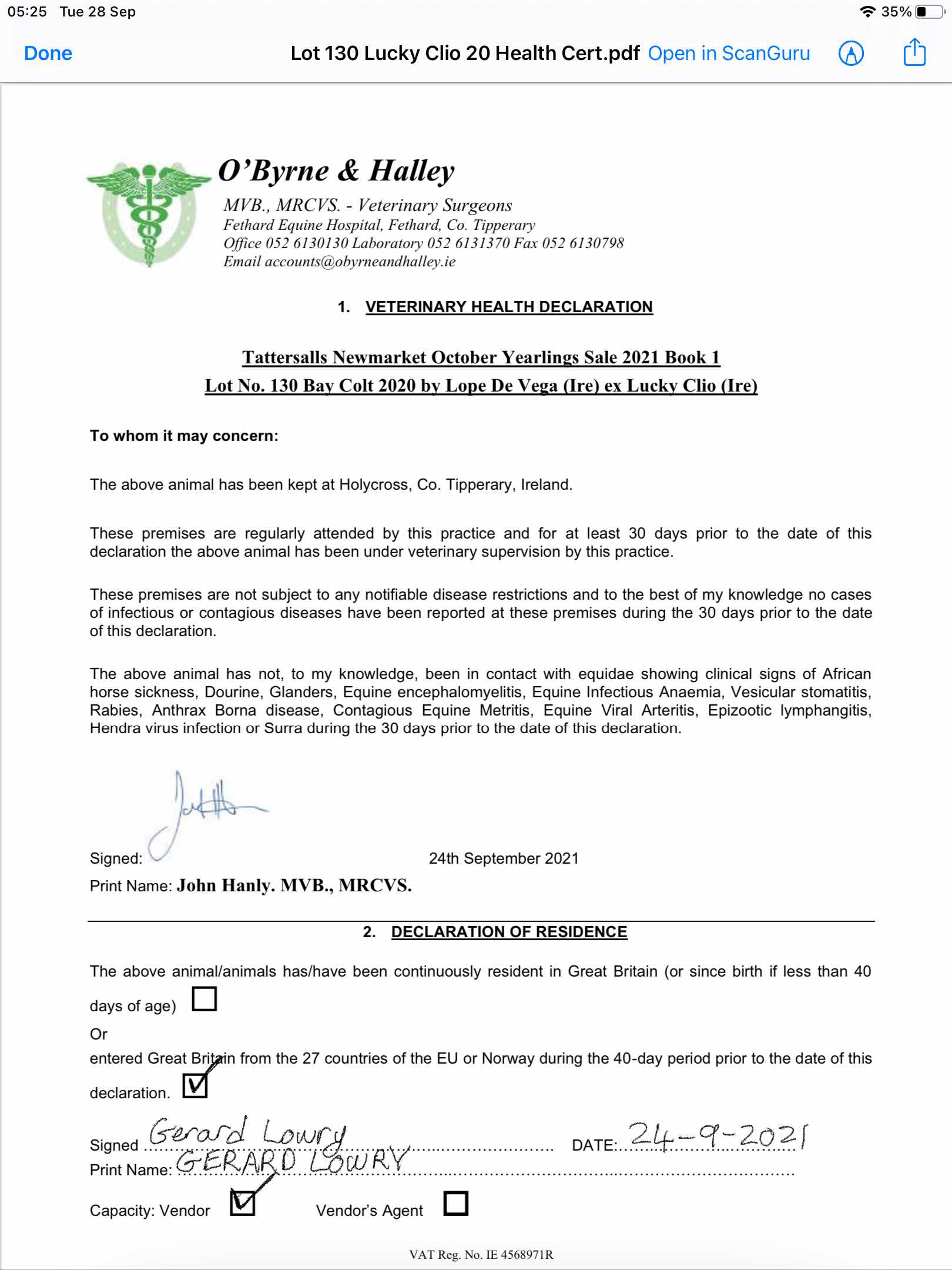 Consignor: Oneliner Stables, Ireland