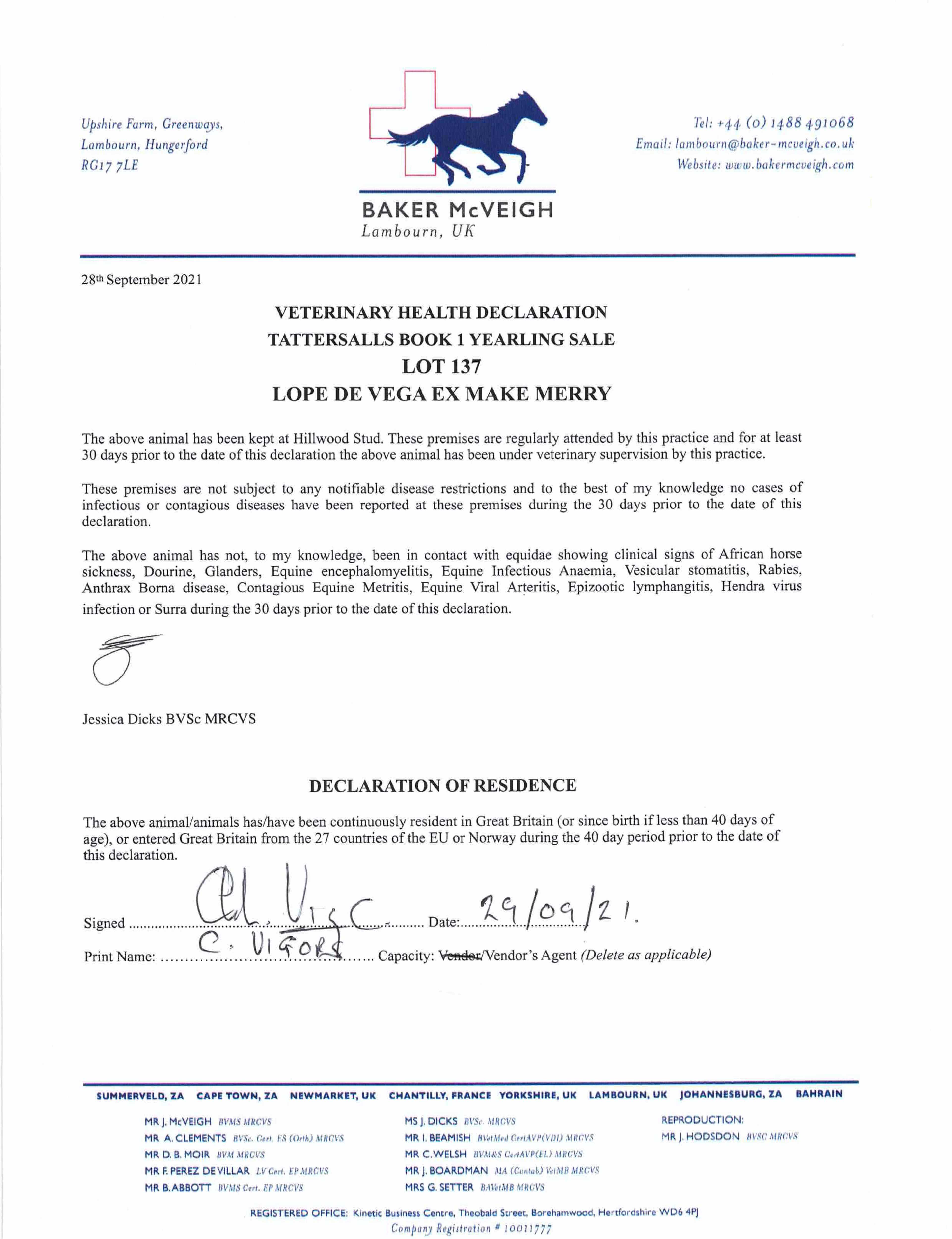 Online Sale - 21st November 2024 lot 101 Las Fallas (GB) (F.), Hegarty Bloodstock=>Vendor 3,000 gns
