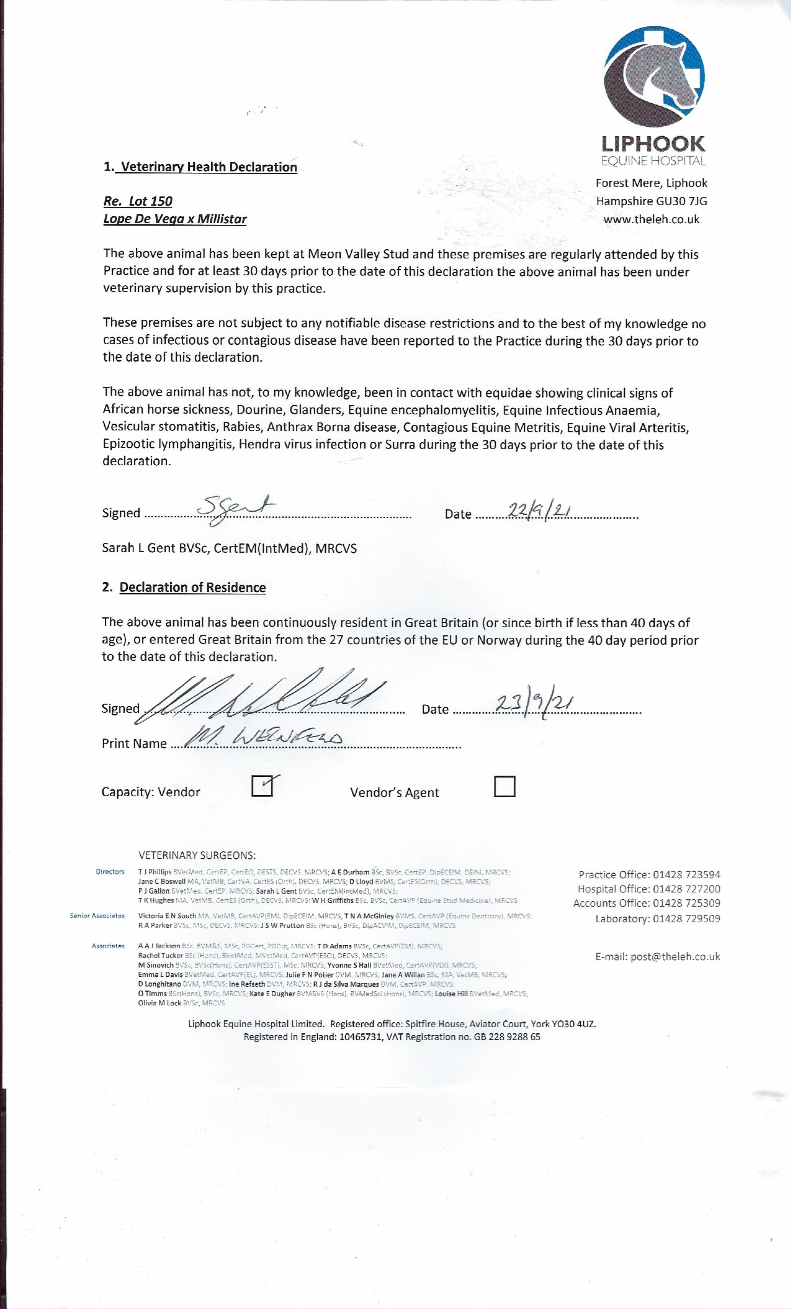 Consignor: Meon Valley Stud