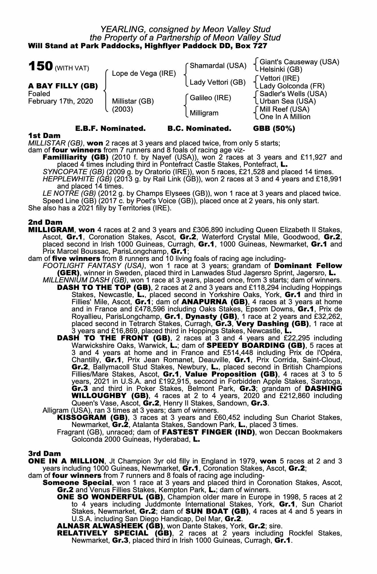 February Sale 2020 lot 49 Lilligram (GB) (F. by Leroidesanimaux (BRZ)), Voute Sales Ltd. (Agent)=>Allan Bloodlines 800 gns