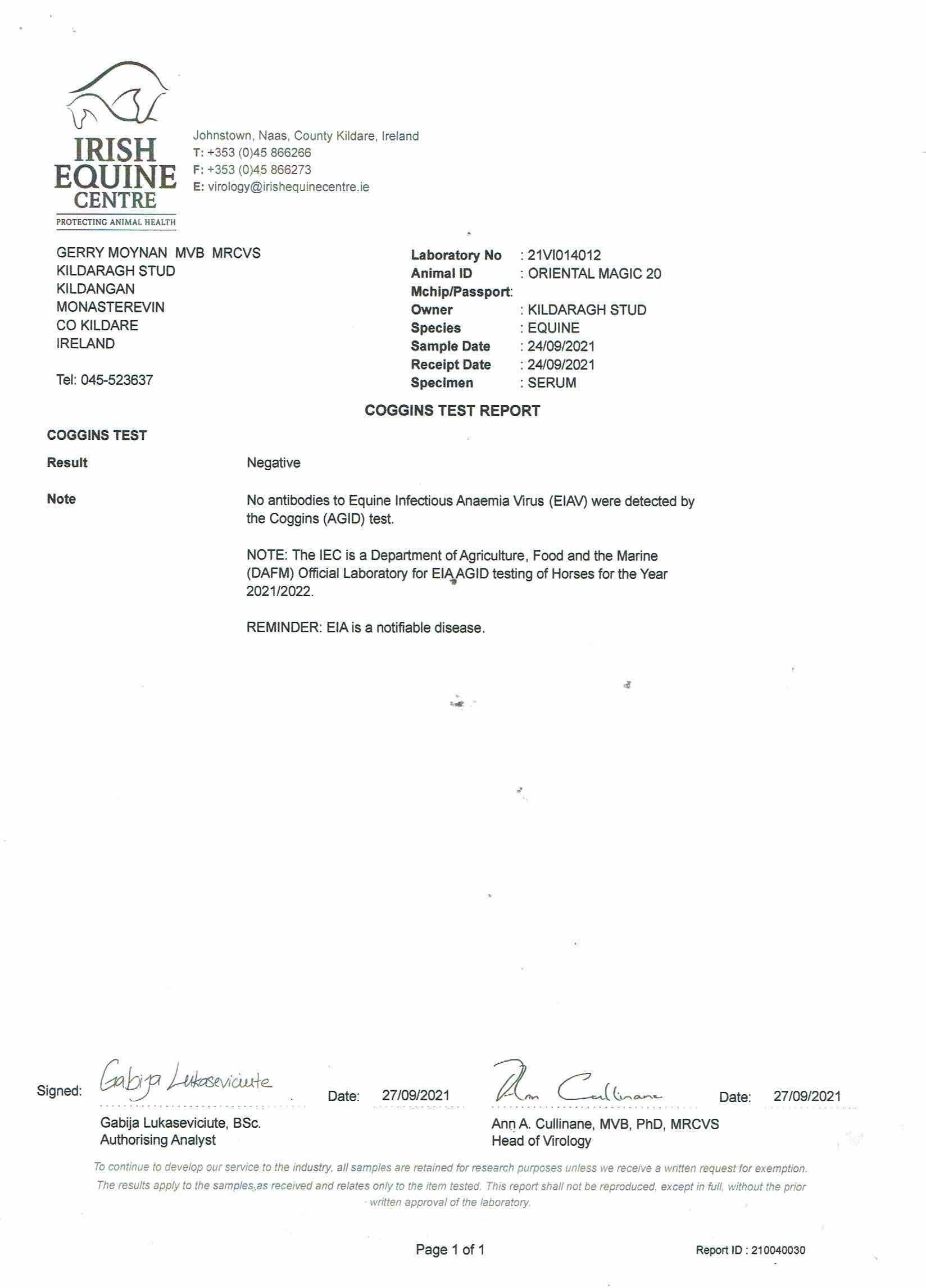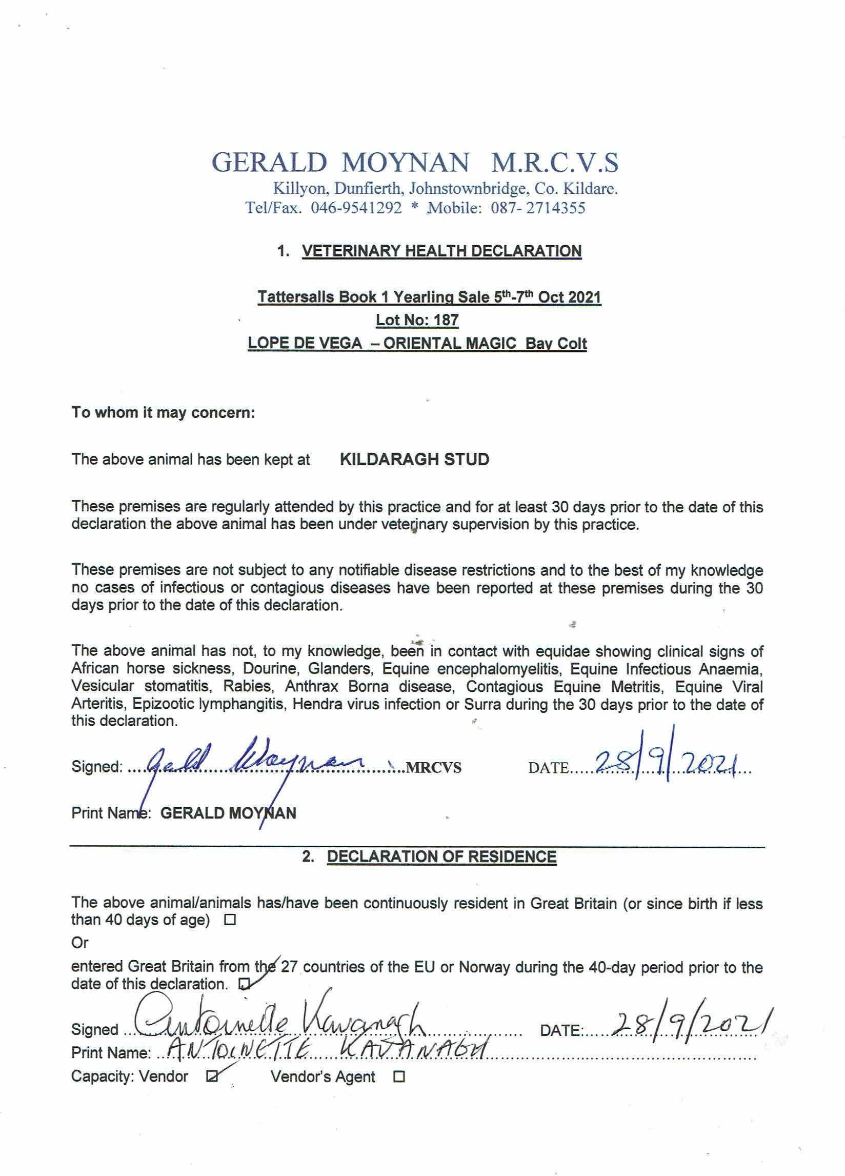 Consignor: Kildaragh Stud, Ireland (Agent)
