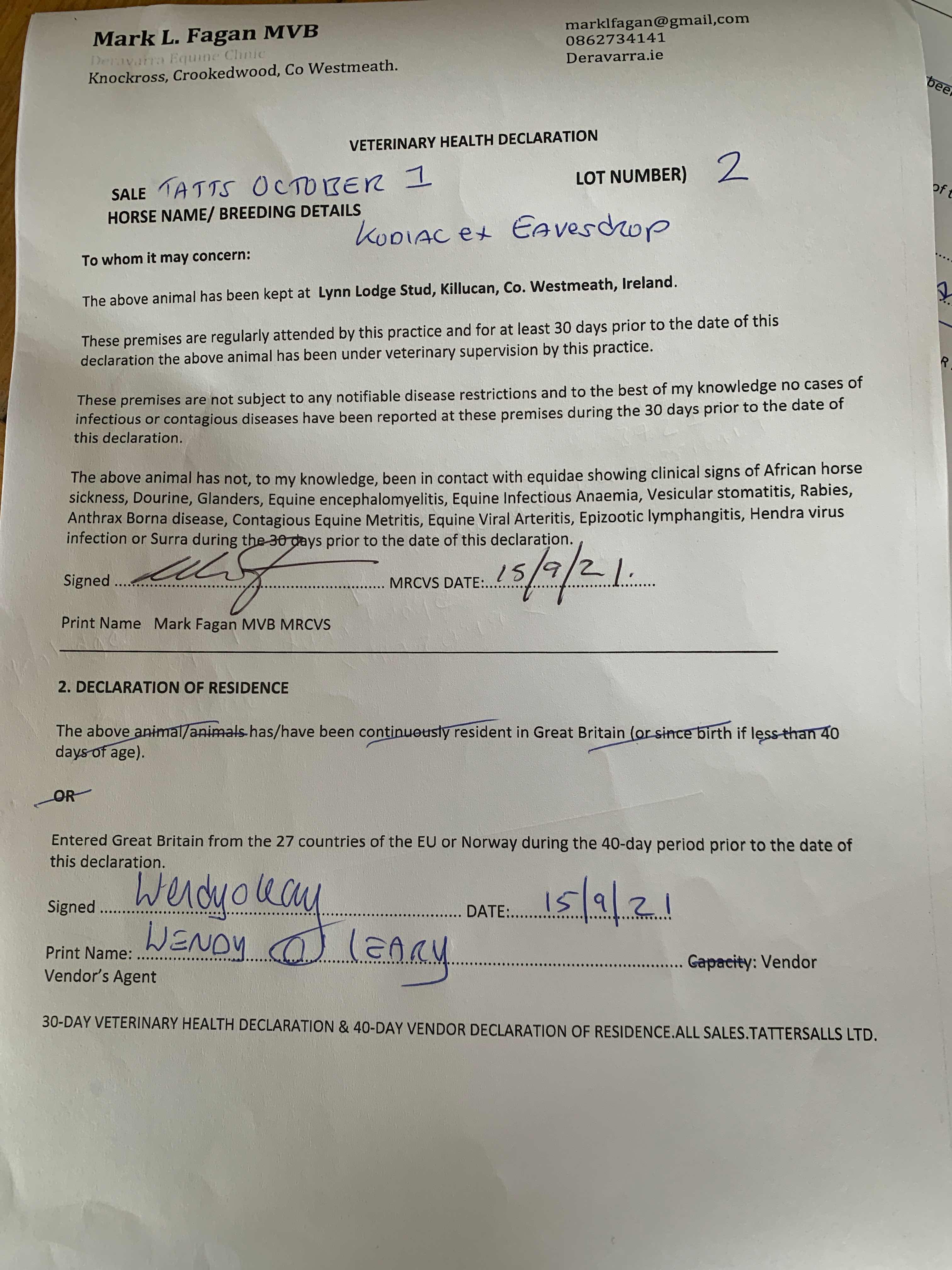 Consignor: Lynn Lodge Stud, Ireland