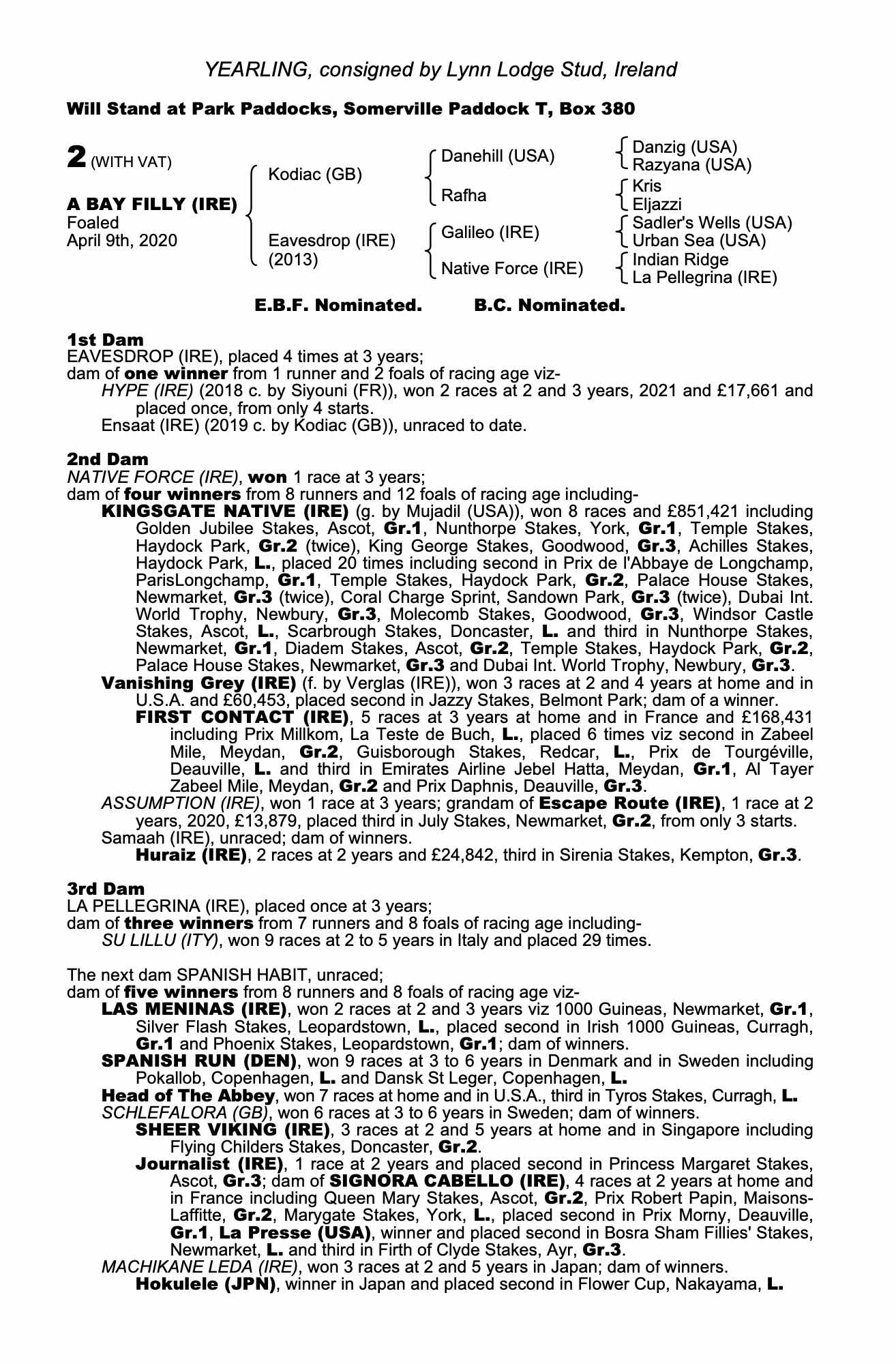 October Yearling Sale, Book 1 2020 lot 135 C. 2019, Lynn Lodge Stud, Ireland=>Shadwell Estate Company 110,000 gns