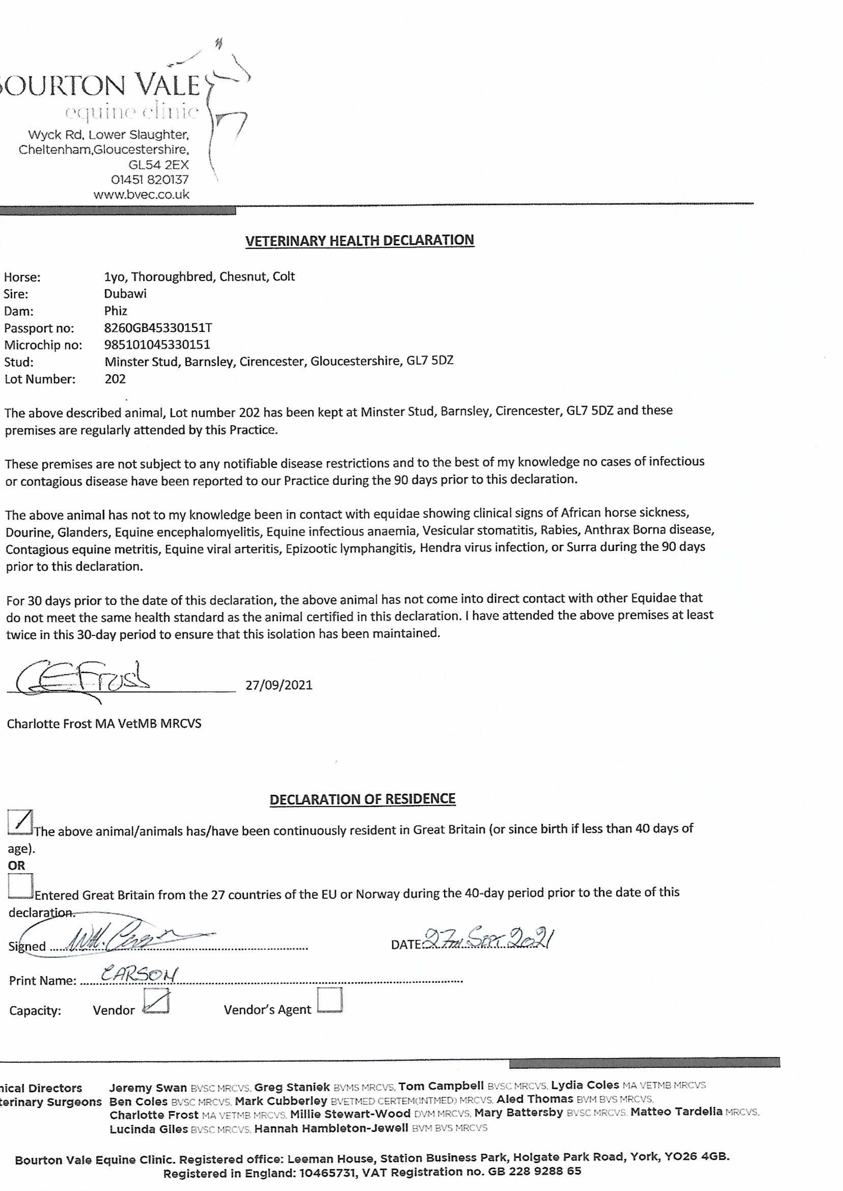 Consignor: Minster Stud