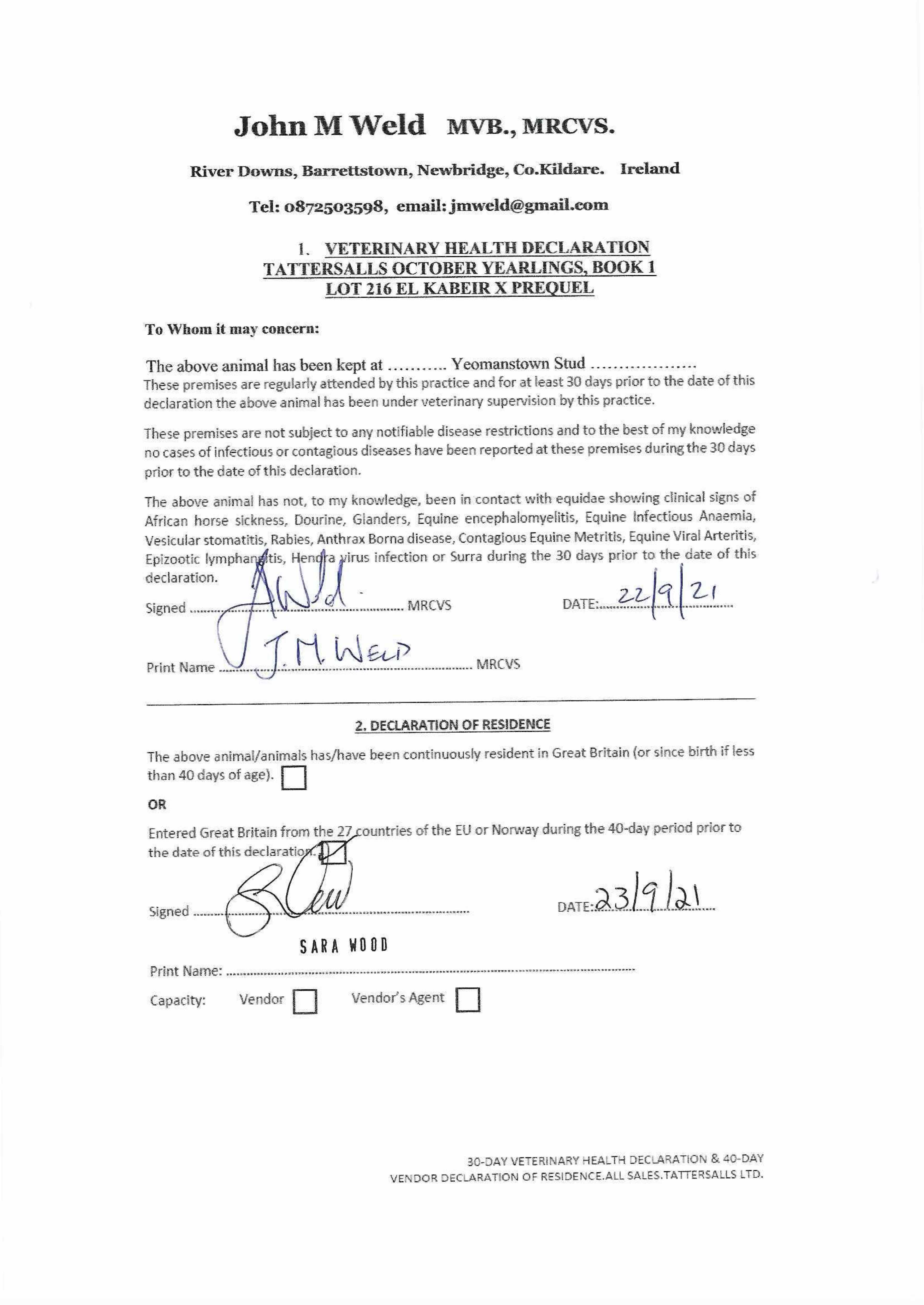 Consignor: Yeomanstown Stud, Ireland