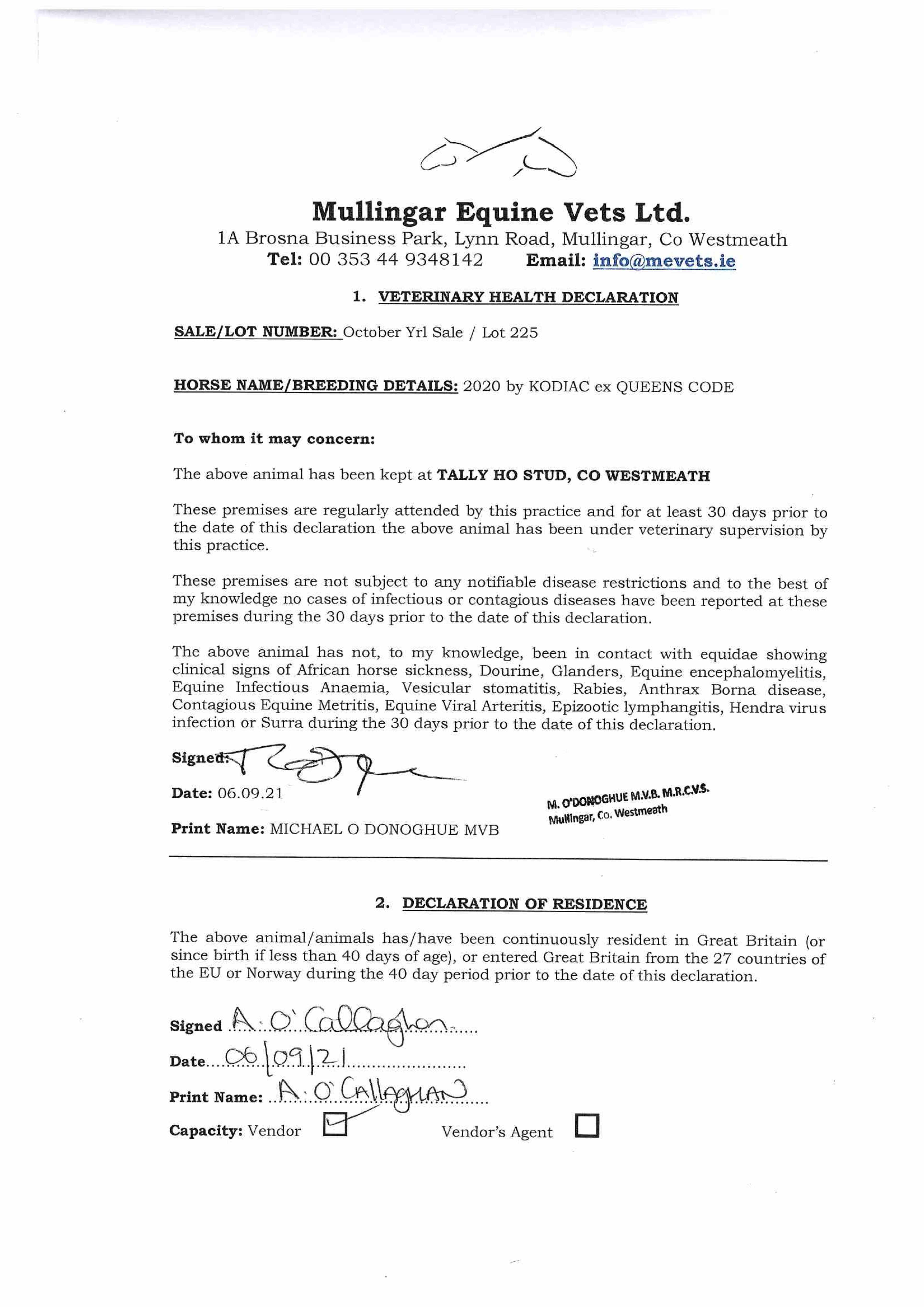 Consignor: Tally-Ho Stud, Ireland