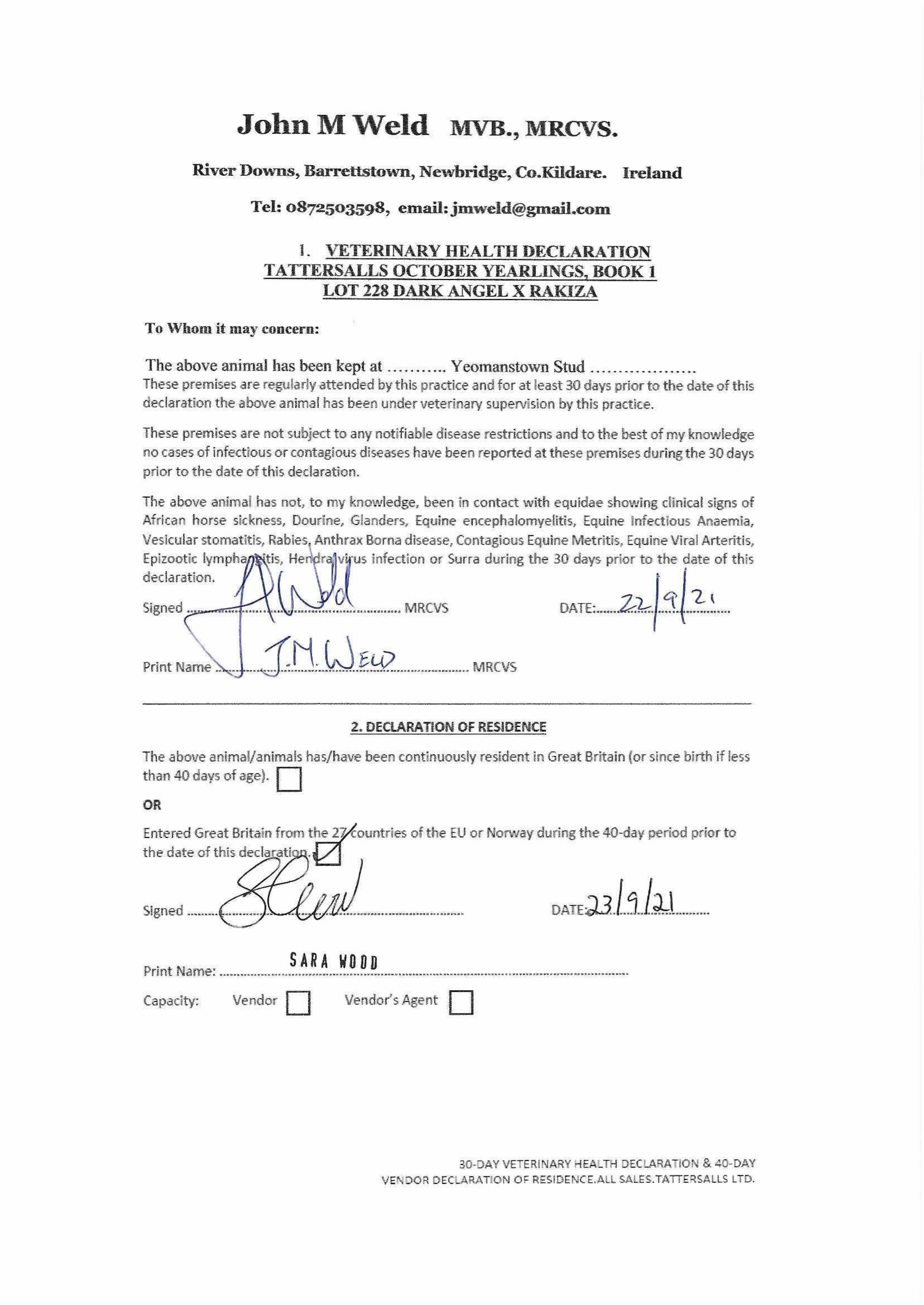 October Yearling Sale, Book 1 2011 lot 301 F. by Speightstown (USA) 2010, Castledillon Stud, Ireland (Agent)=>Vendor 60,000 gns