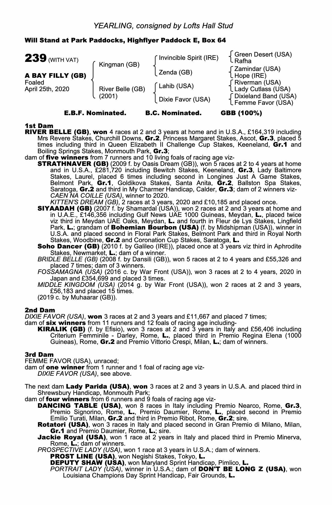 Consignor: Lofts Hall Stud