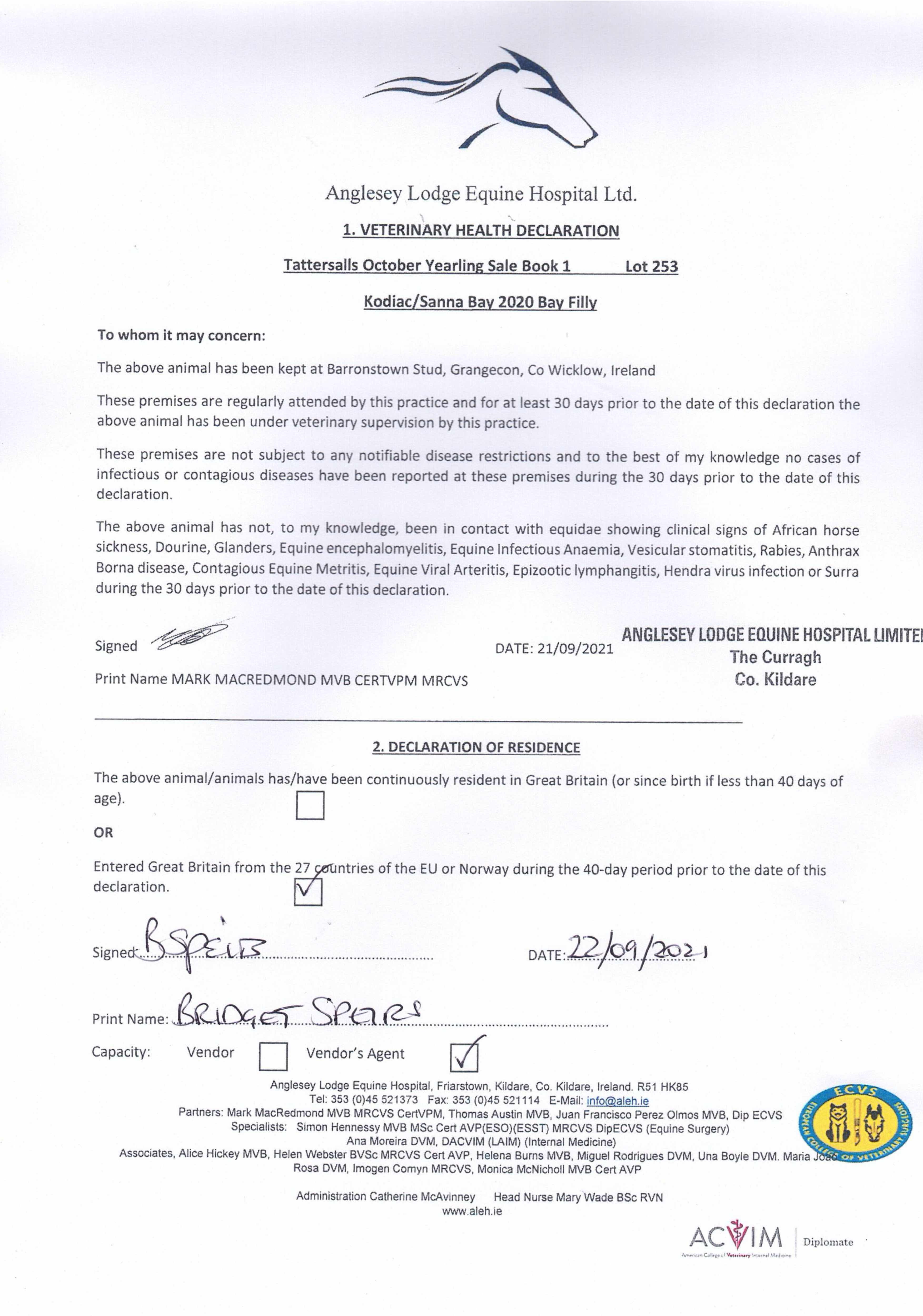 Consignor: Barronstown Stud, Ireland