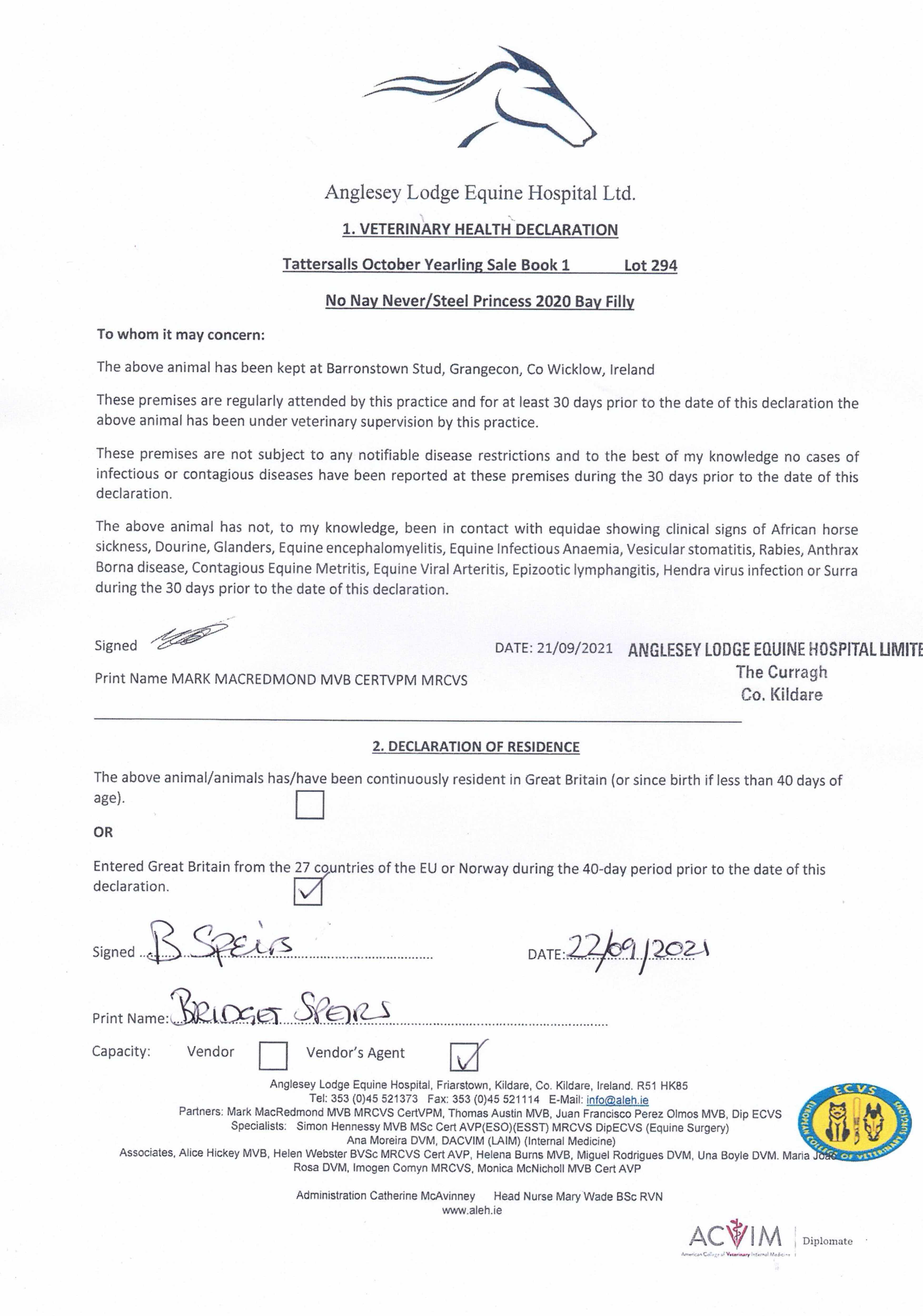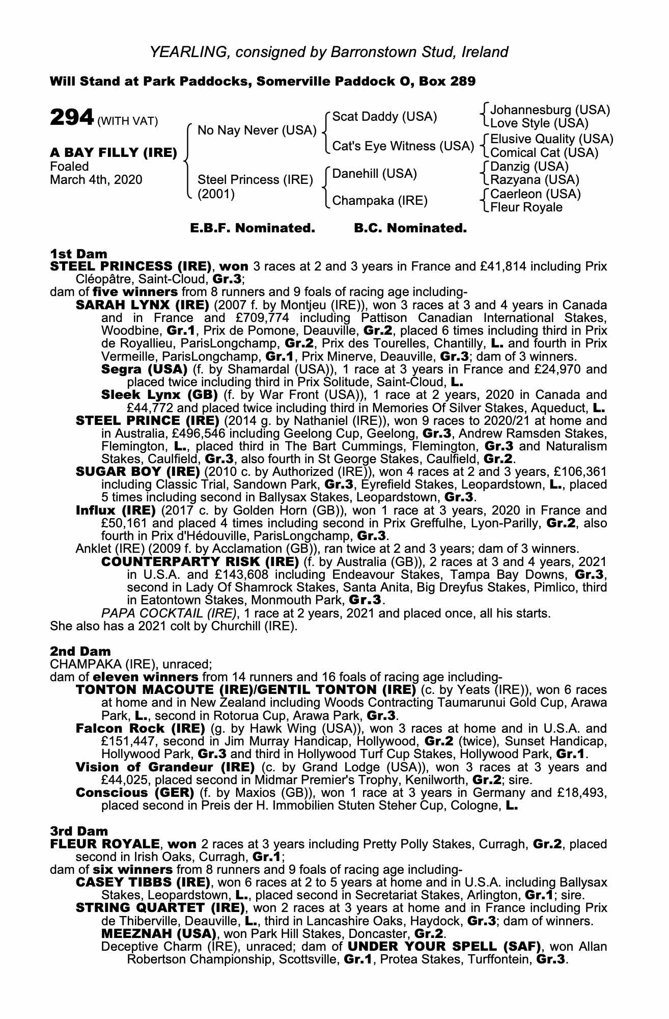 Consignor: Barronstown Stud, Ireland