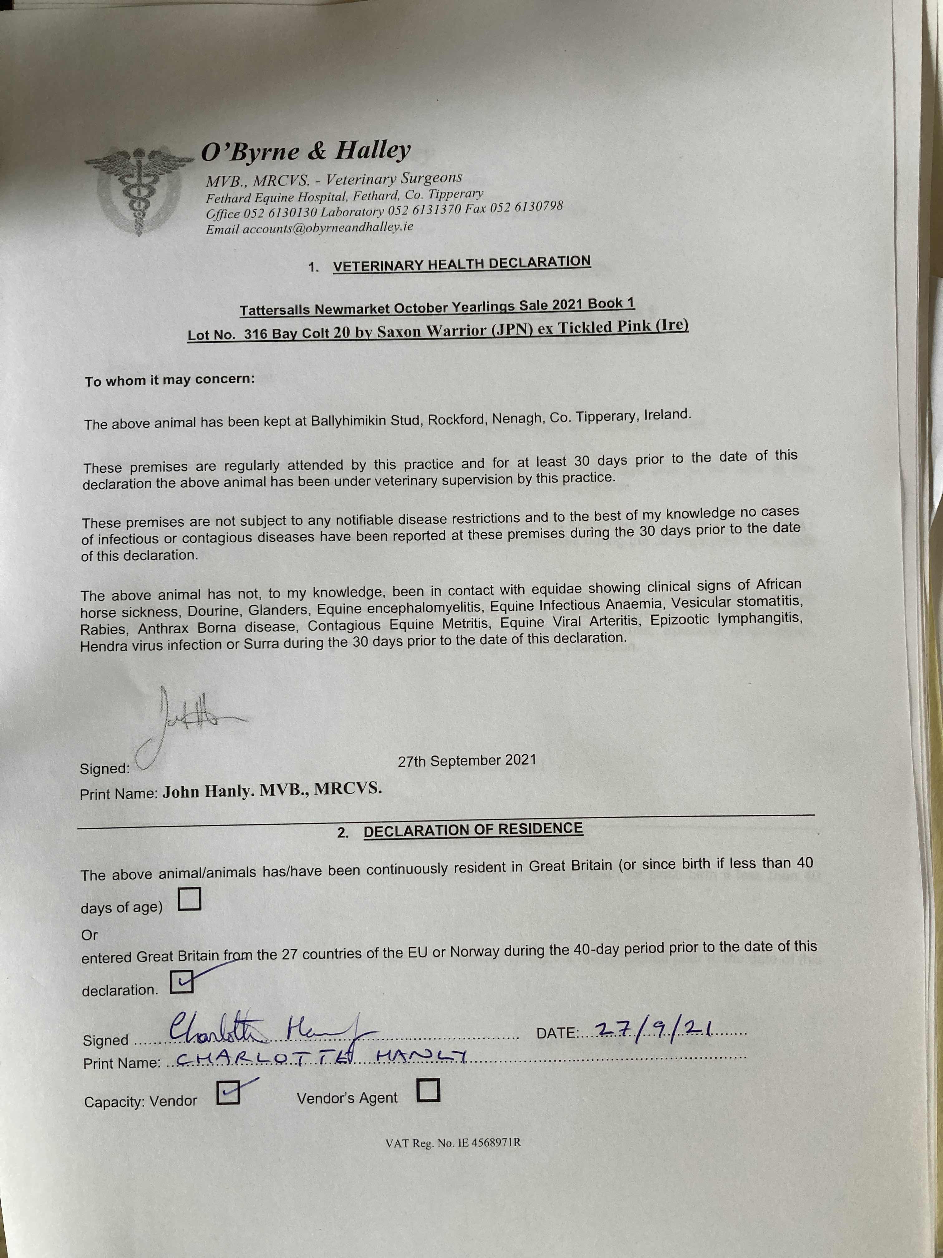 Consignor: Ballyhimikin Stud, Ireland