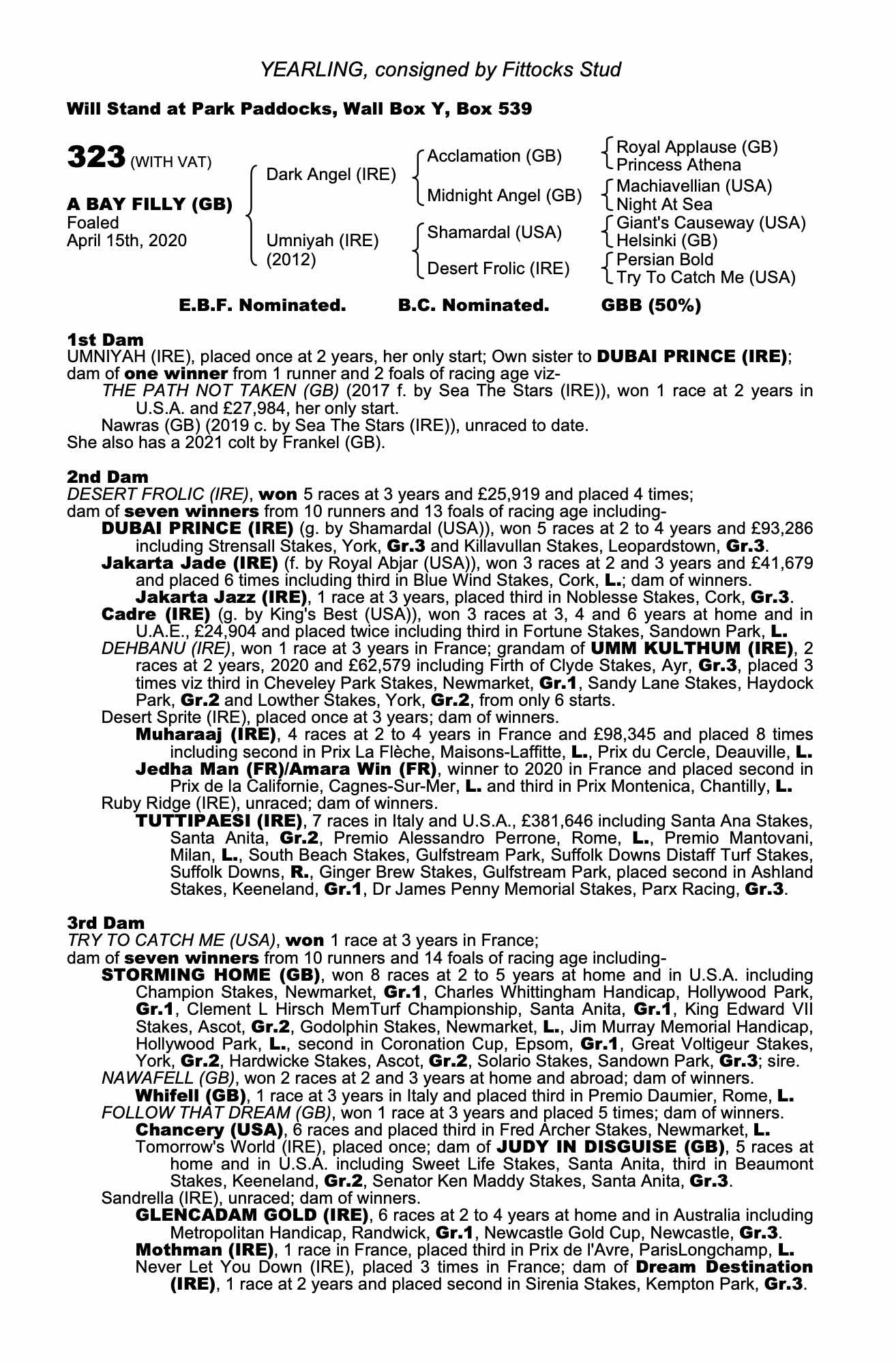 October Yearling Sale, Book 2 2024 lot 485 F. by St Mark's Basilica (FR) 2023, Fittocks Stud=>Vendor 80,000 gns