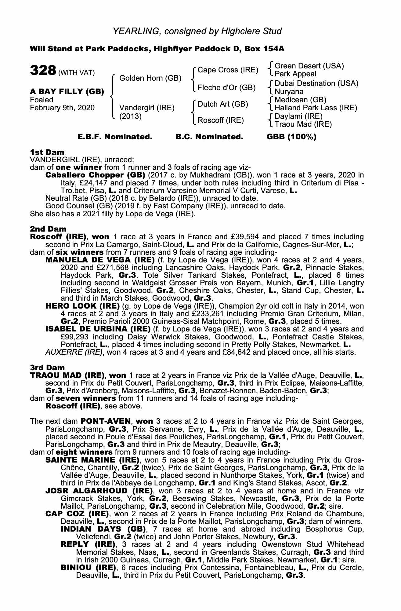 December Foal Sale 2021 lot 902 F. by Lope de Vega (IRE) 2021, Glebe Farm Stables=>Gestüt Fährhof 95,000 gns