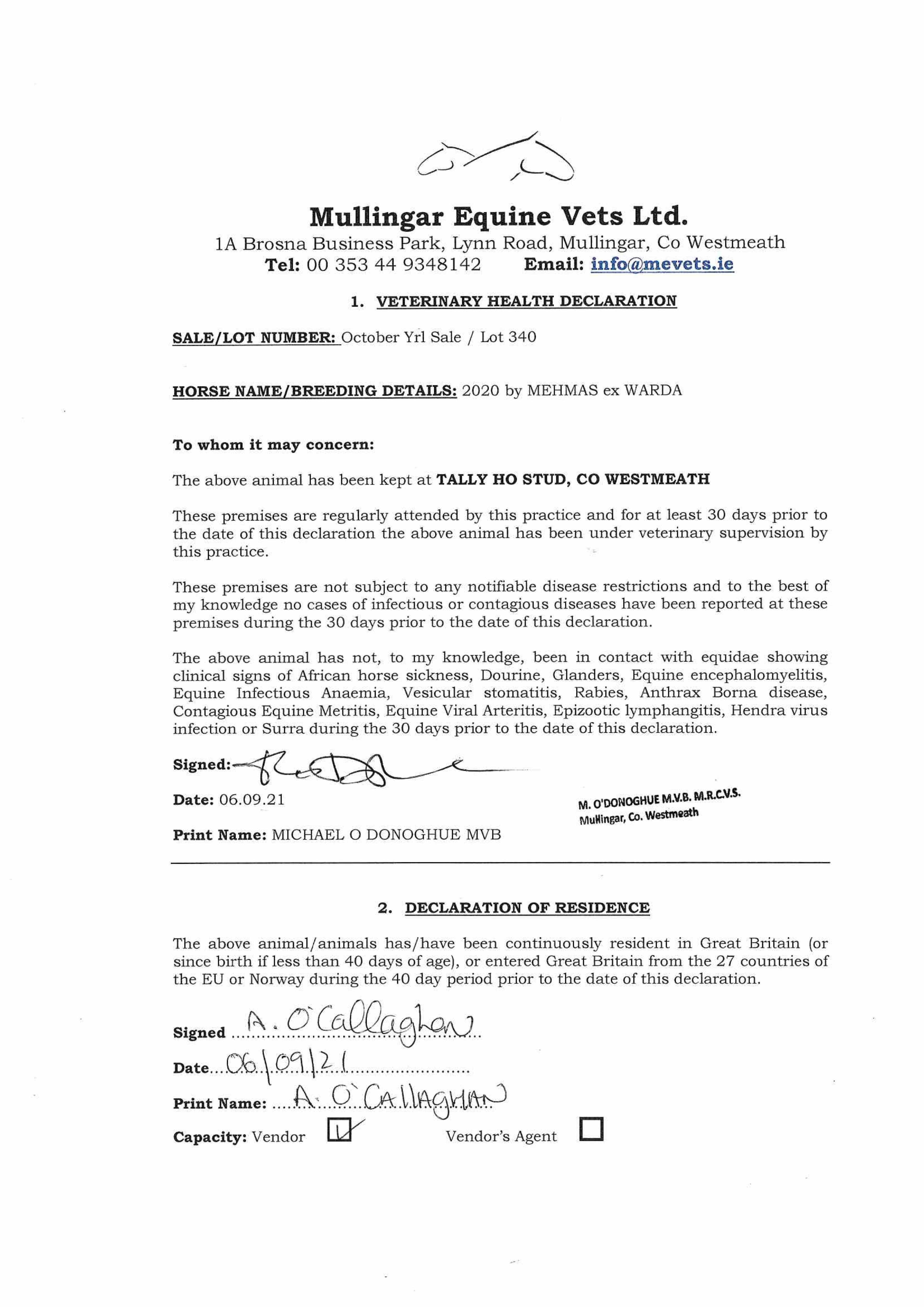 Consignor: Tally-Ho Stud, Ireland