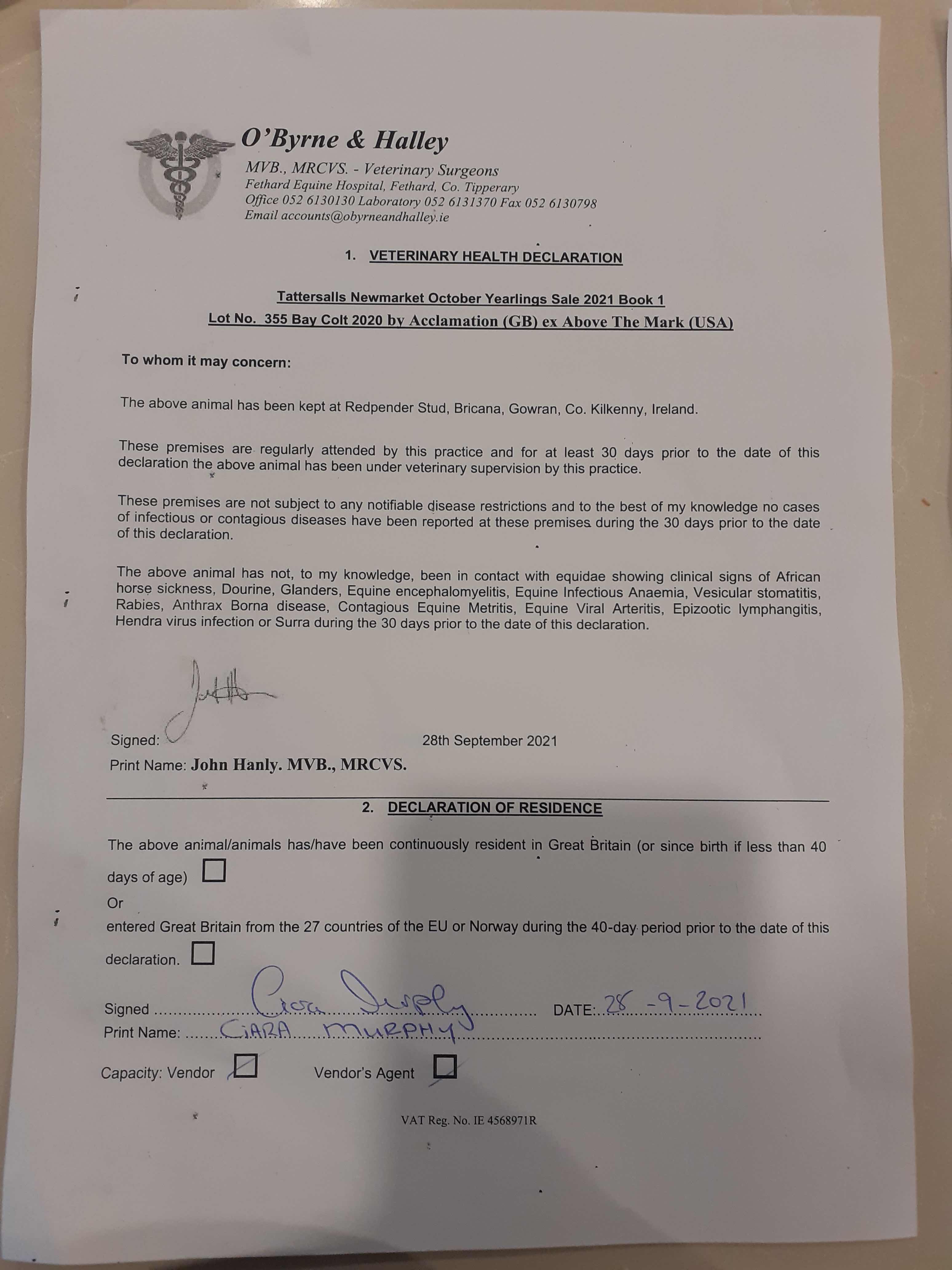 Consignor: Redpender Stud, Ireland