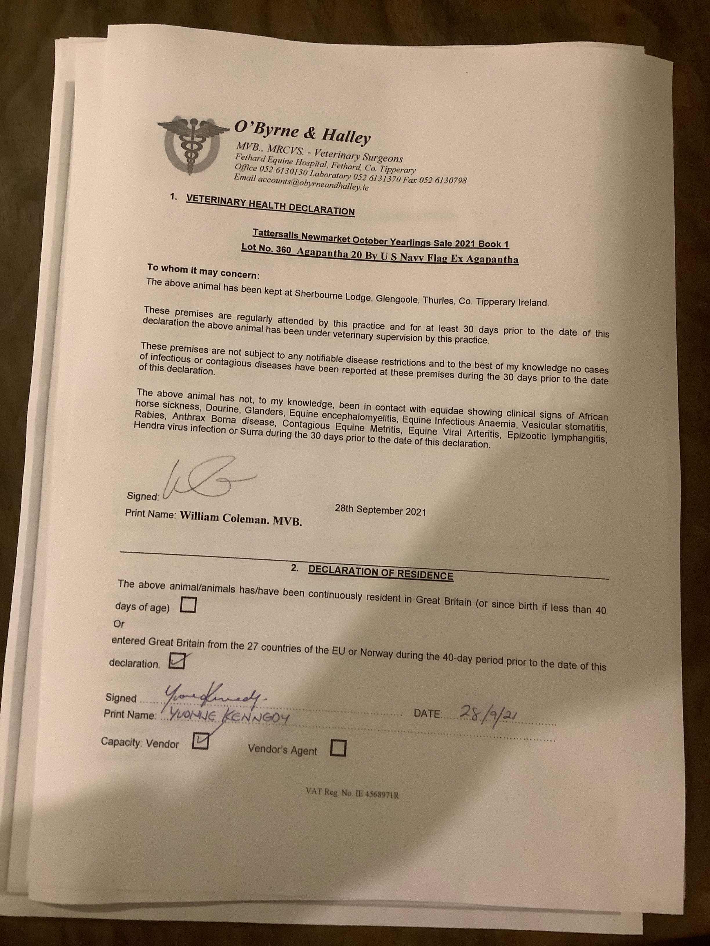 Consignor: Sherbourne Lodge, Ireland