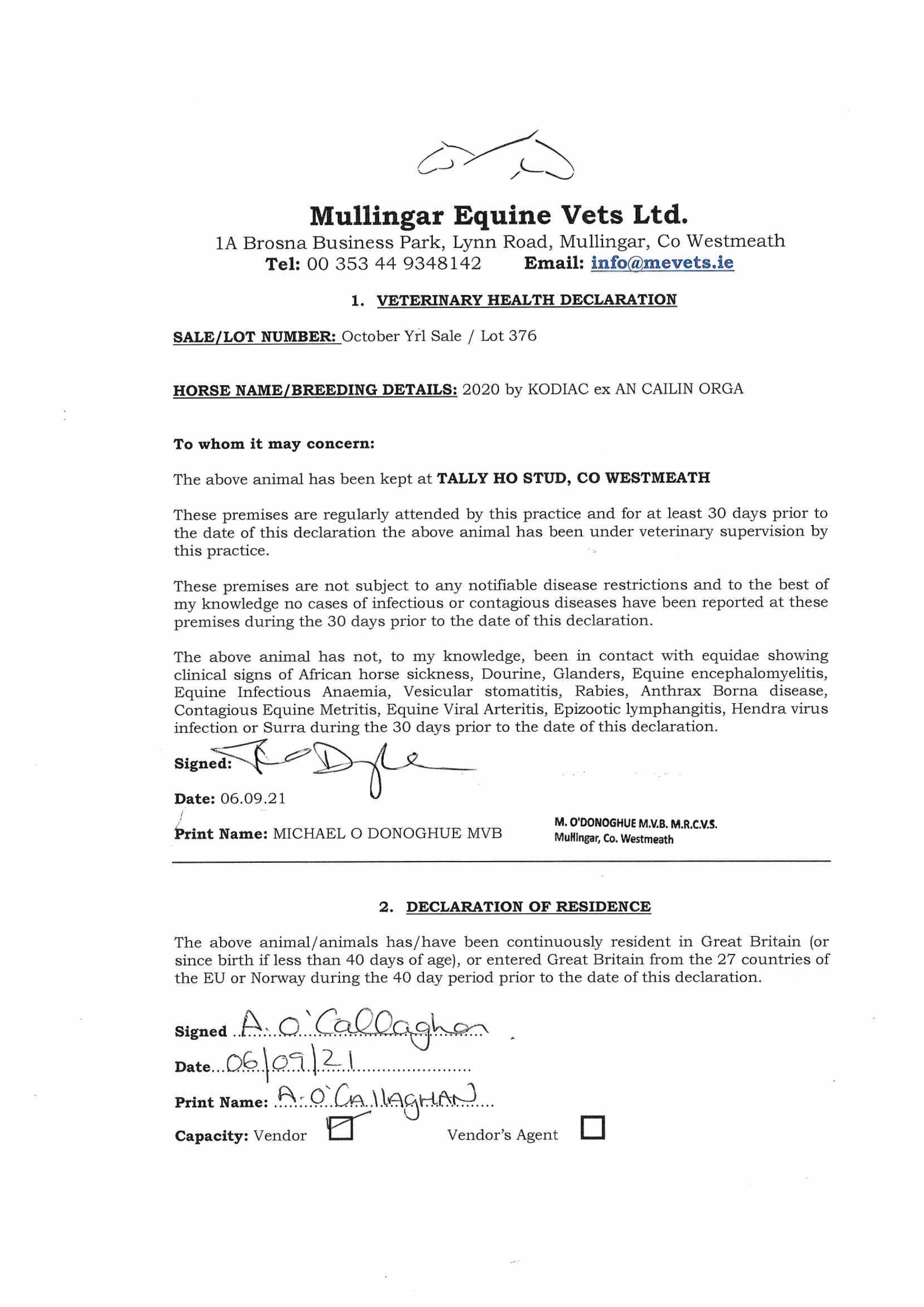 Consignor: Tally-Ho Stud, Ireland