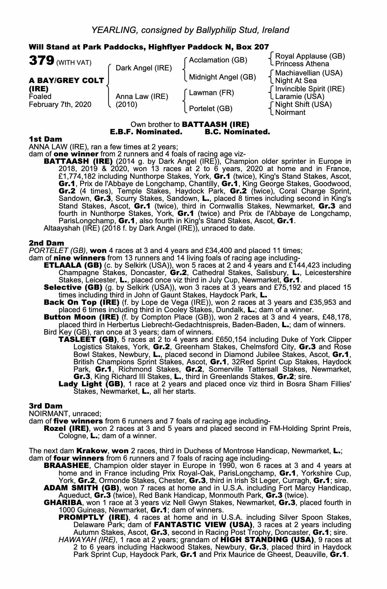 Dark Angel (IRE) / Anna Law (IRE) B/Gr.C. (IRE)