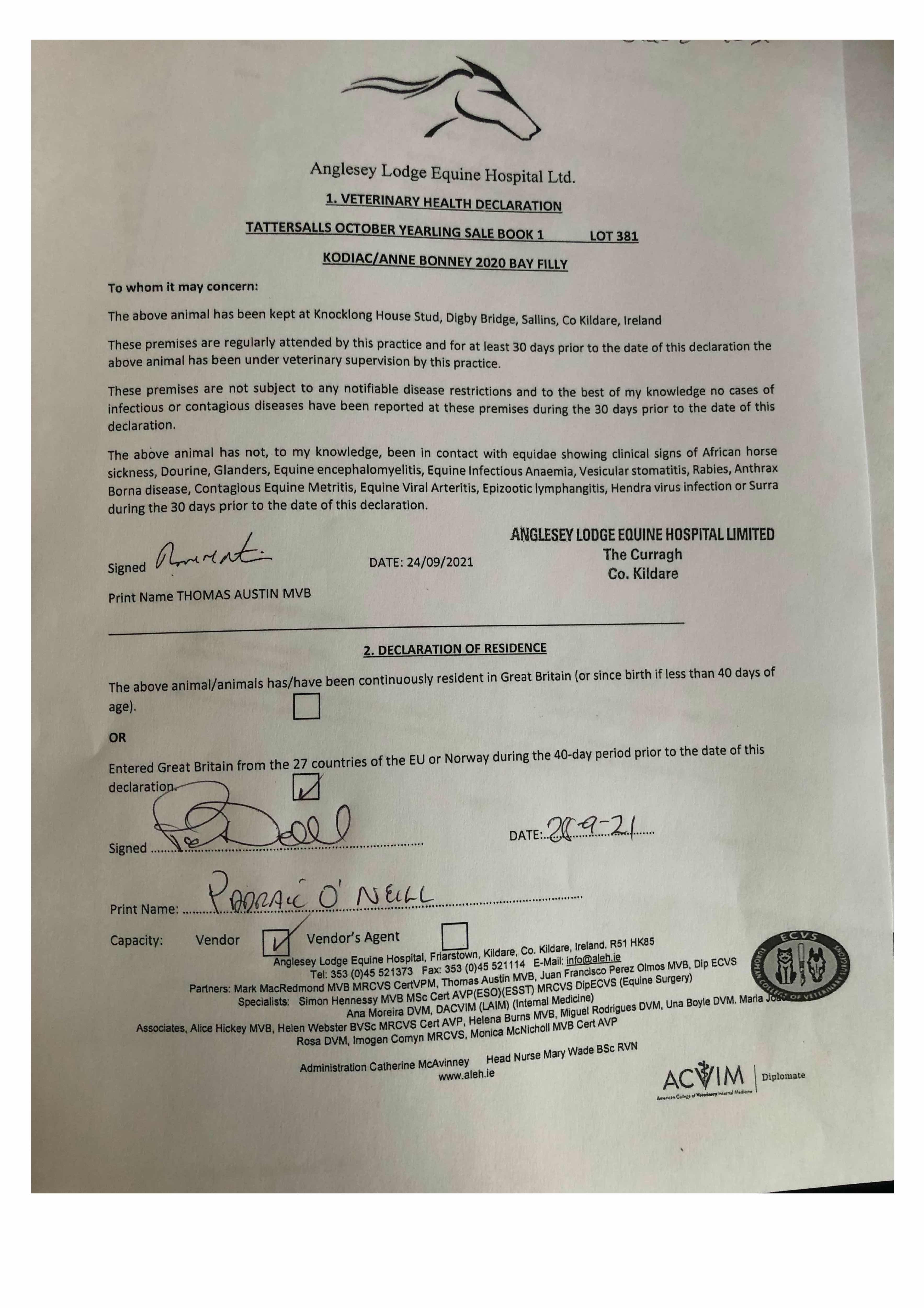 Consignor: Knocklong House Stud, Ireland